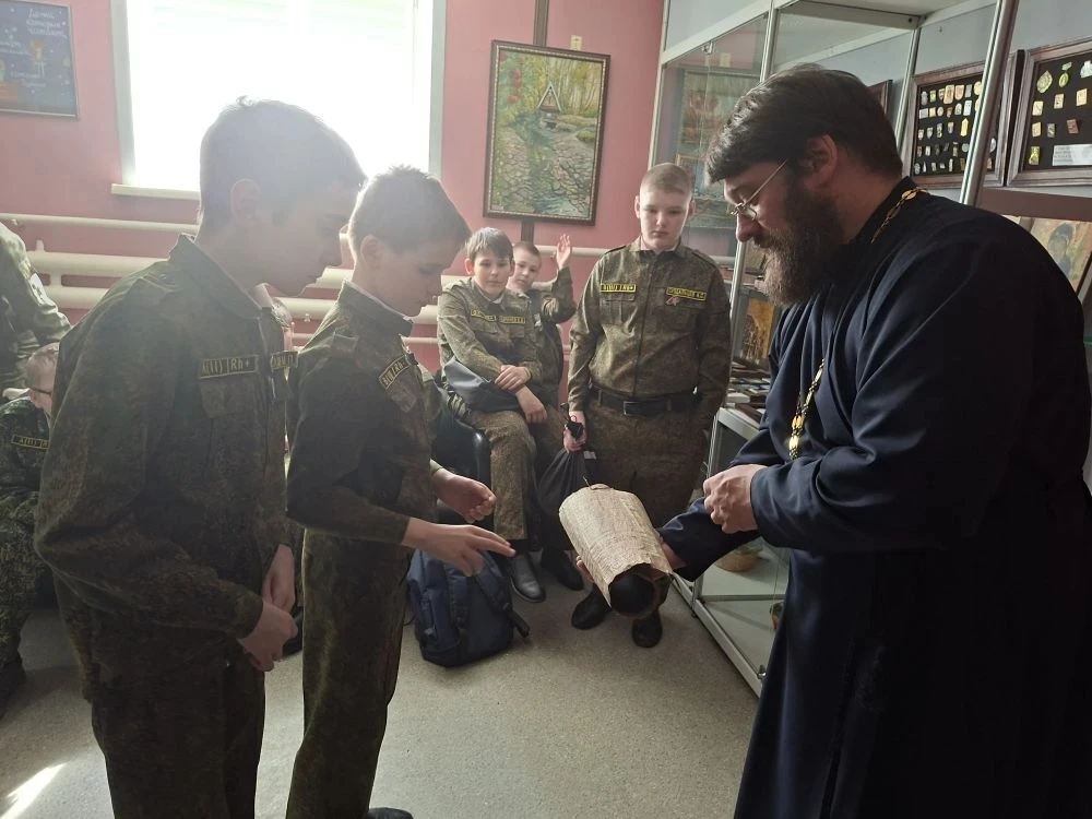 ✨️Отец Георгий познакомил школьников с постоянной экспозицией центра. Ребята увидели старинные книги, иконы, Распятия, макеты знаменитых храмов и репродукции картин русских художников. Особый интерес вызвал воссозданный станок первопечатника Ивана Фёдорова и настоящие доспехи воина Руси.