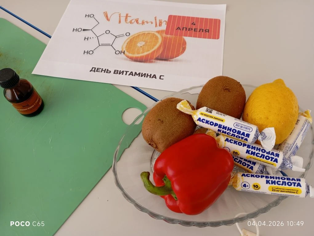 🍃А в прошлую субботу, 4 апреля — во Всемирный день витамина С, ребята узнали о влиянии на здоровье: укреплении иммунитета, улучшении работы мозга, поддержке соединительной и костной тканей, усвоении железа. И о том, в каких продуктах большее содержание аскорбиновой кислоты, и на удивление, это не цитрусовые, такие как апельсины и лимоны, а красный болгарский перец, шиповник, облепиха, петрушка, укроп, шпинат.