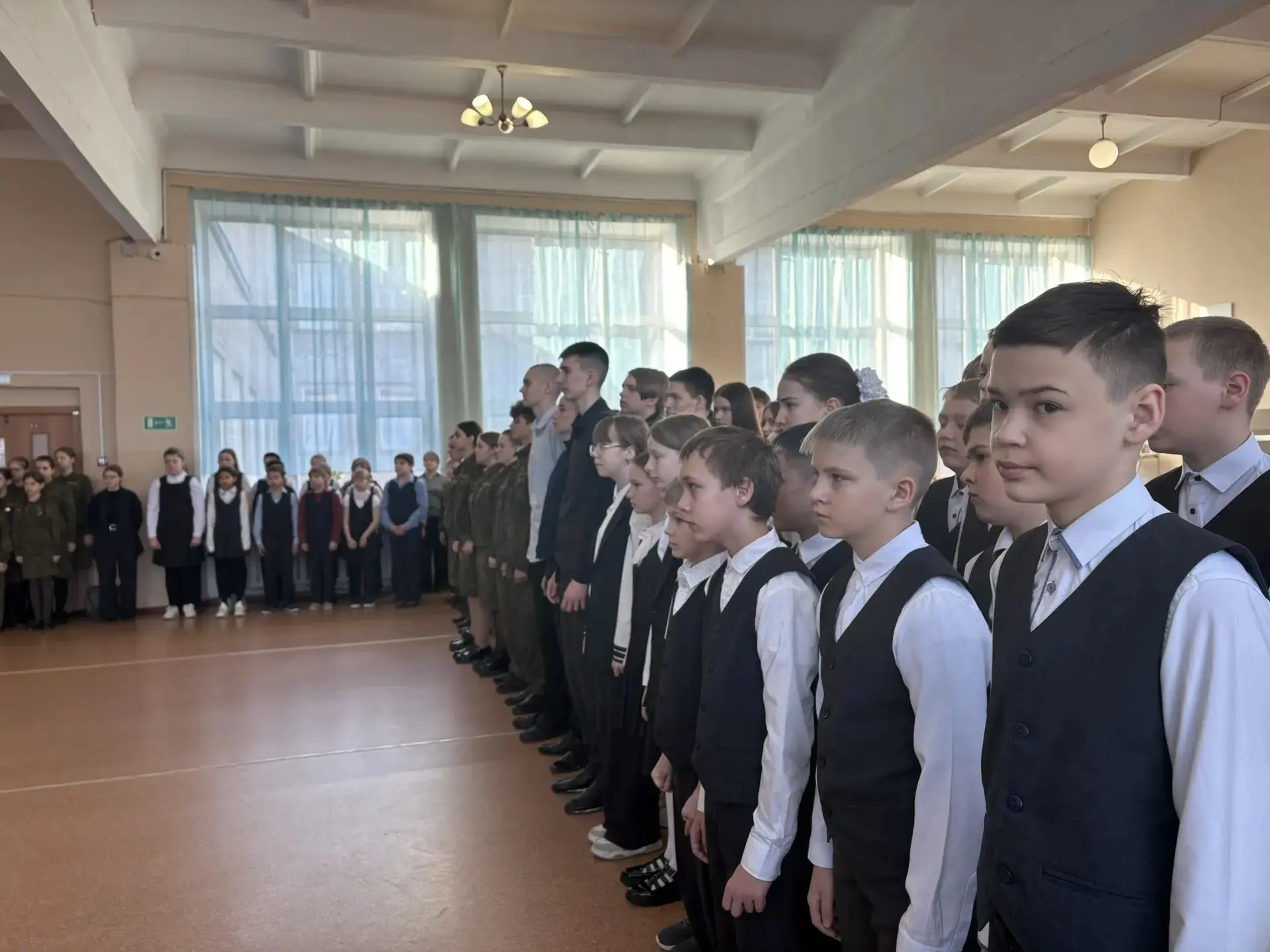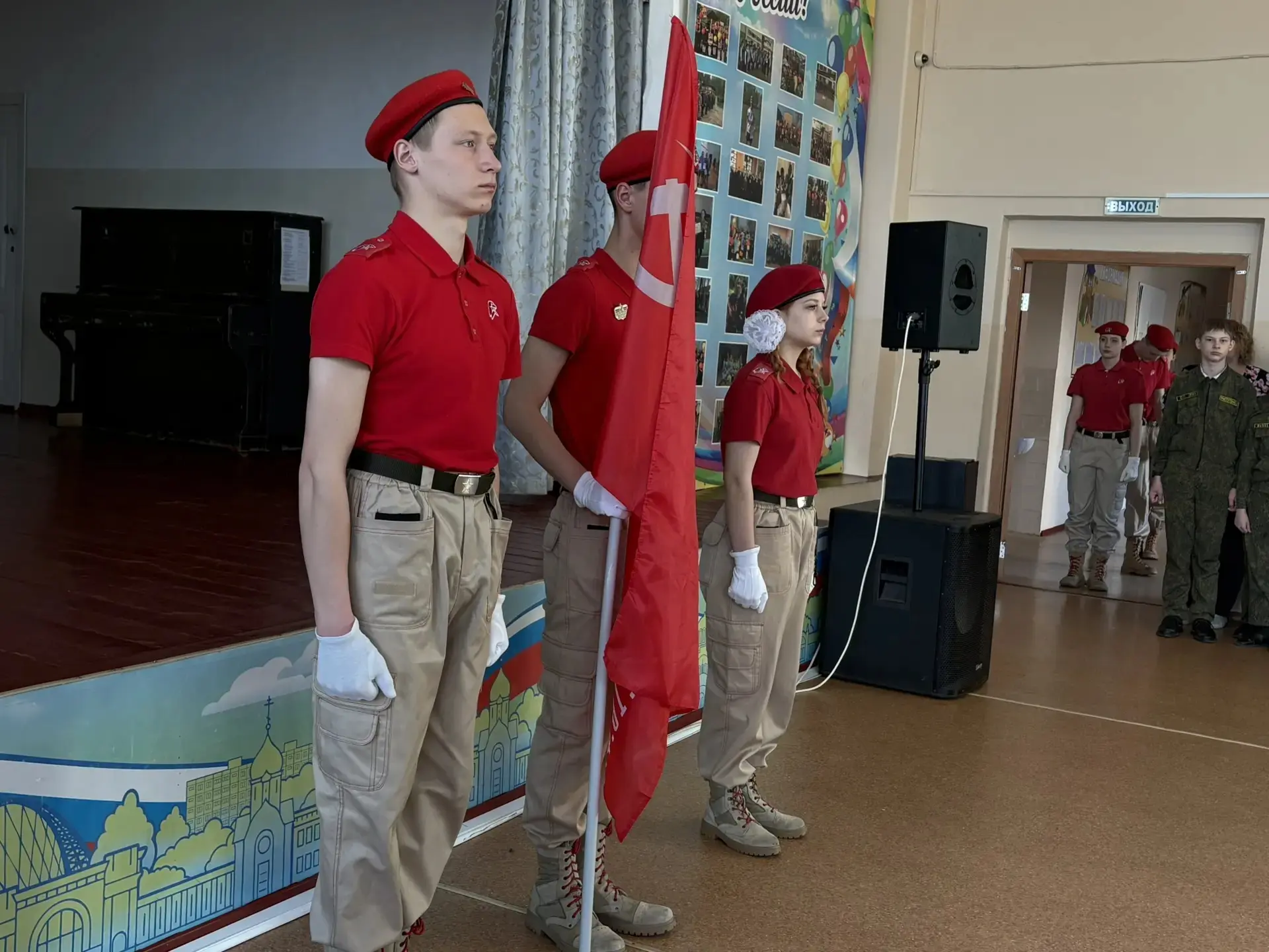 8 апреля в школе прошла торжественная линейка в рамках региональной общественно-патриотической акции "Часовой у знамени Победы".