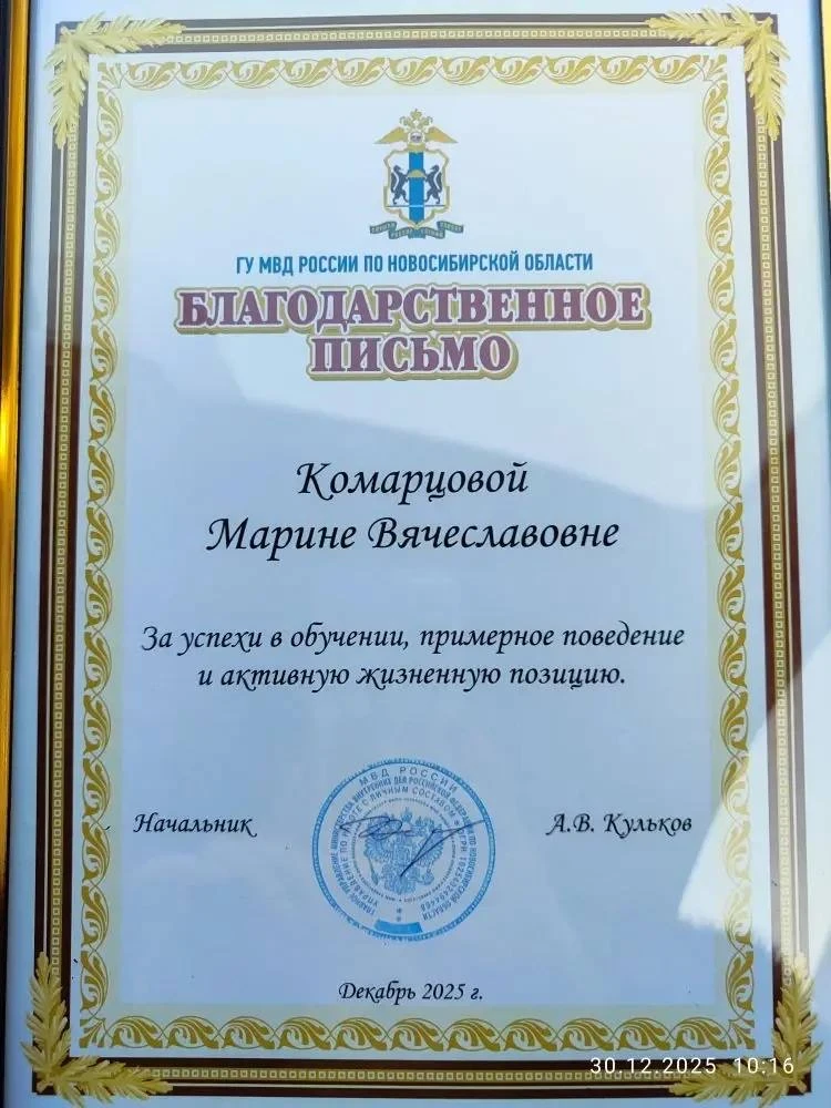 Мы с гордостью поздравляем нашу ученицу 8 Г класса — Комарцову Марину! 🎉👏 Она продемонстрировала отличные результаты в учении и заслужила эту награду благодаря своему труду и настойчивости.