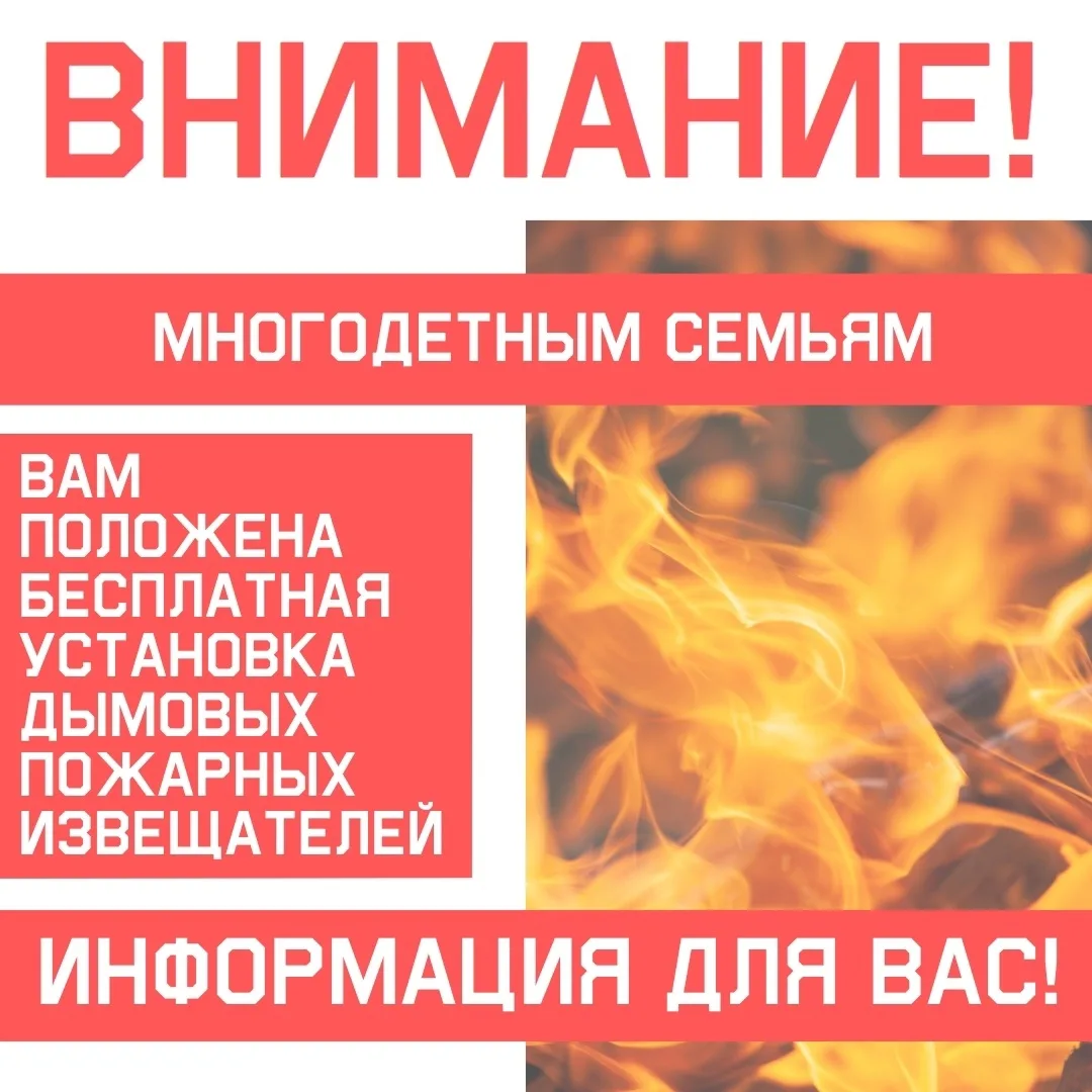 ⚠️Вы многодетная семья? У вас трое и более несовершеннолетних ребятишек? Тогда вы имеете право на БЕСПЛАТНУЮ установку автономного дымового пожарного извещателя (АДПИ) с GSM-модулем. Он спасёт жизнь ваших детей и ваше имущество при пожаре!