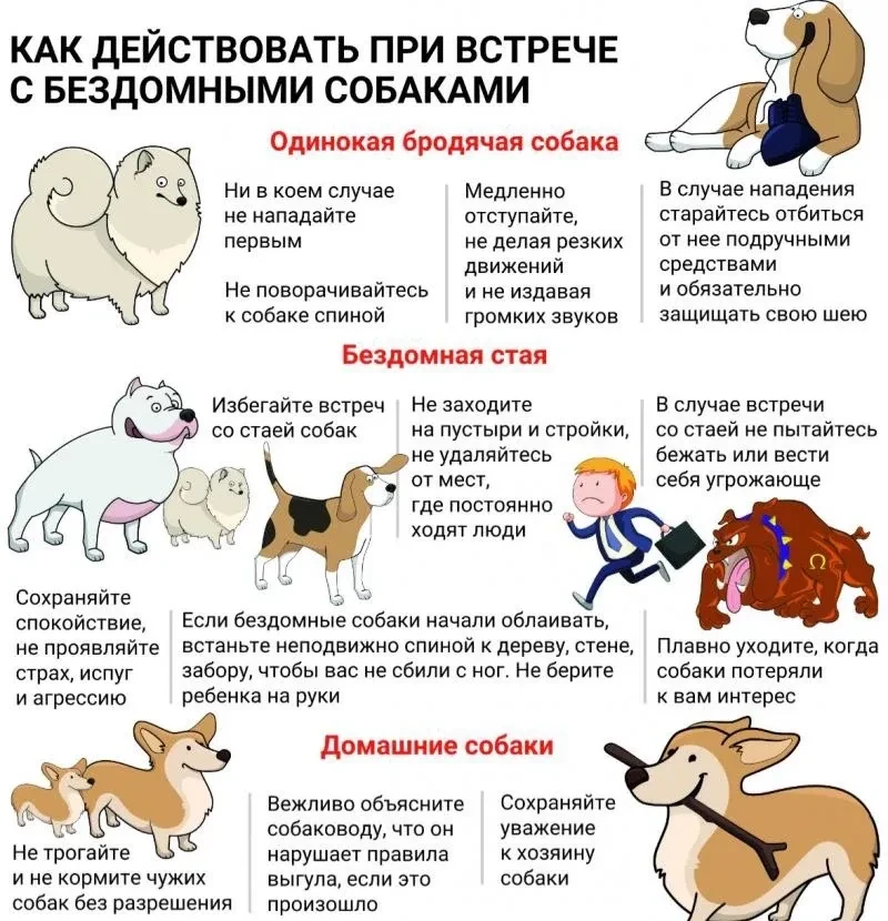 1. Не приближайтесь к бродячим собакам и не вызывайте их агрессию.
