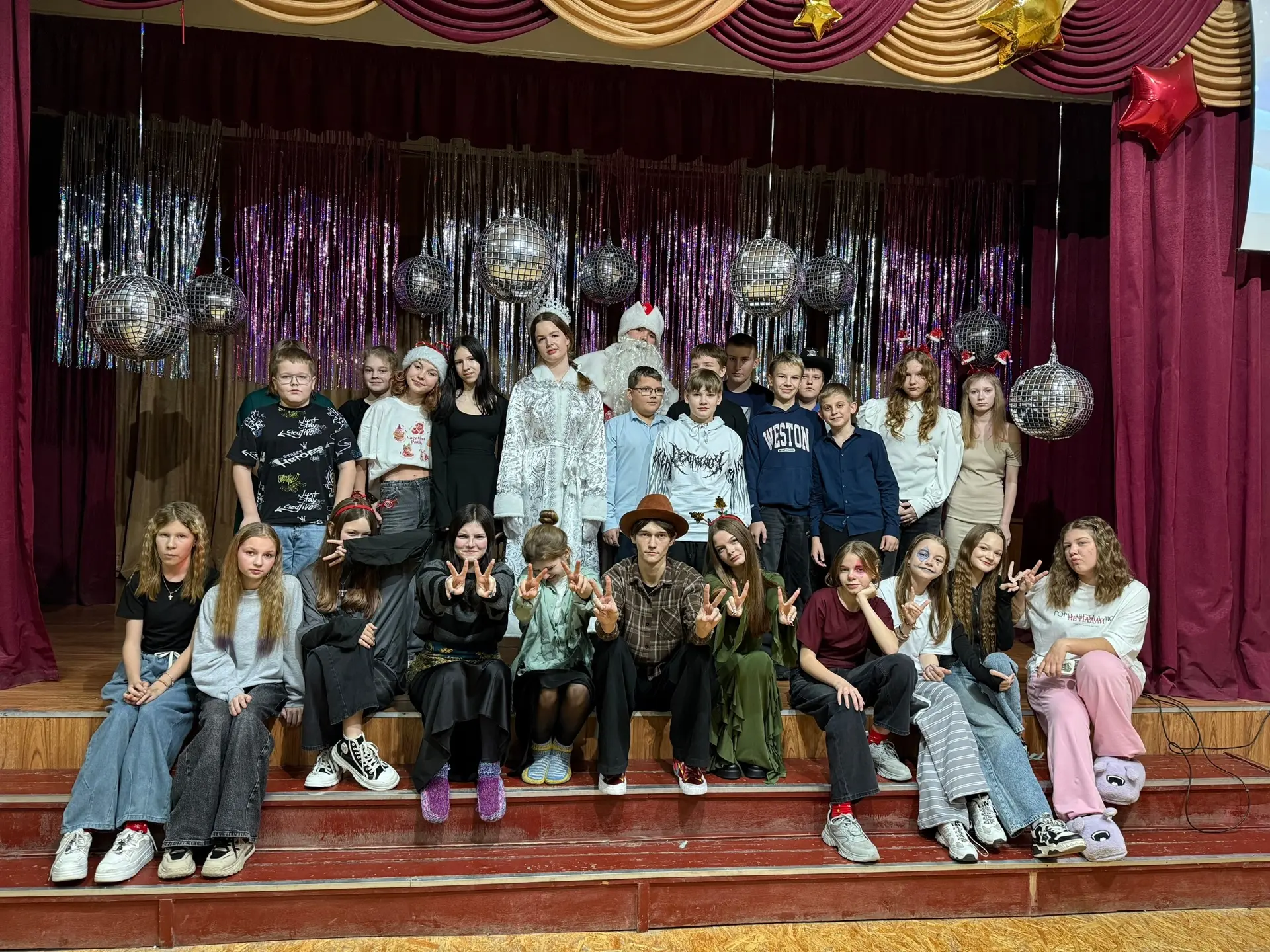 🎶 А старшие классы весело играют в новогоднее музыкальное лото! 🎤🎵 Здесь царит атмосфера веселья, смеха и, конечно, много танцев! 💃🕺