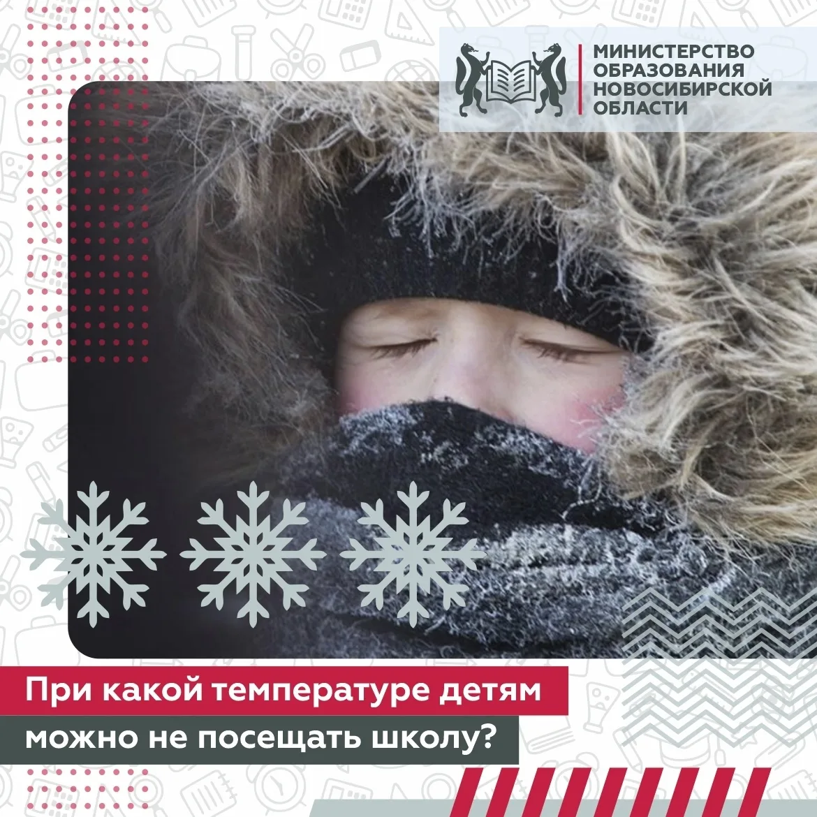 Напоминаем Вам, что родители имеют право самостоятельно решать, будет ли их ребенок посещать школу в мороз. Они должны уведомить об этом классного руководителя или администрацию учебного заведения, сначала по телефону, а затем в письменной форме.