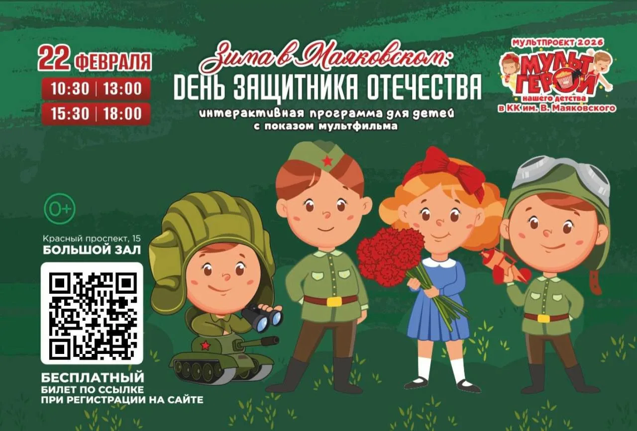 Дорогие друзья! 22 февраля в КК им. В. Маяковского мы подготовили для вас увлекательную интерактивную программу и показ мультфильмов! 🌟