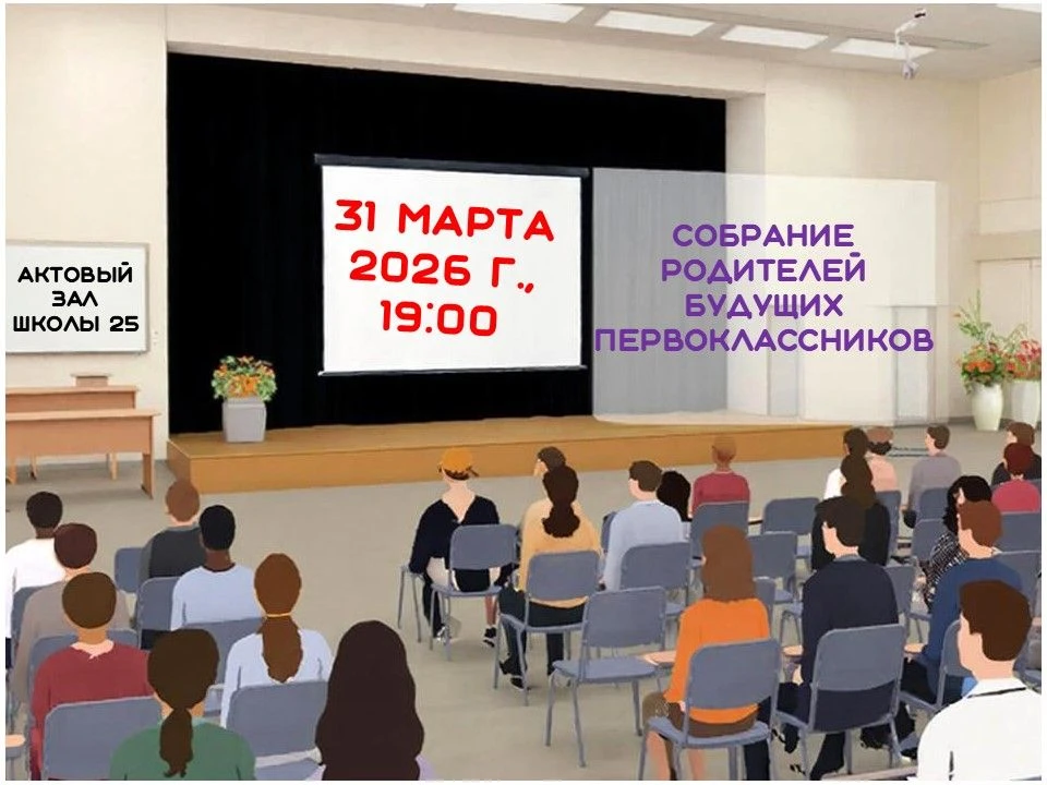 Собрание родителей будущих первоклассников состоится 31 марта 2026 года в актовом зале Кудряшовской СШ № 25 (д. п. Кудряшовский, ул. Октябрьская, 16а). Начало в 19:00.
