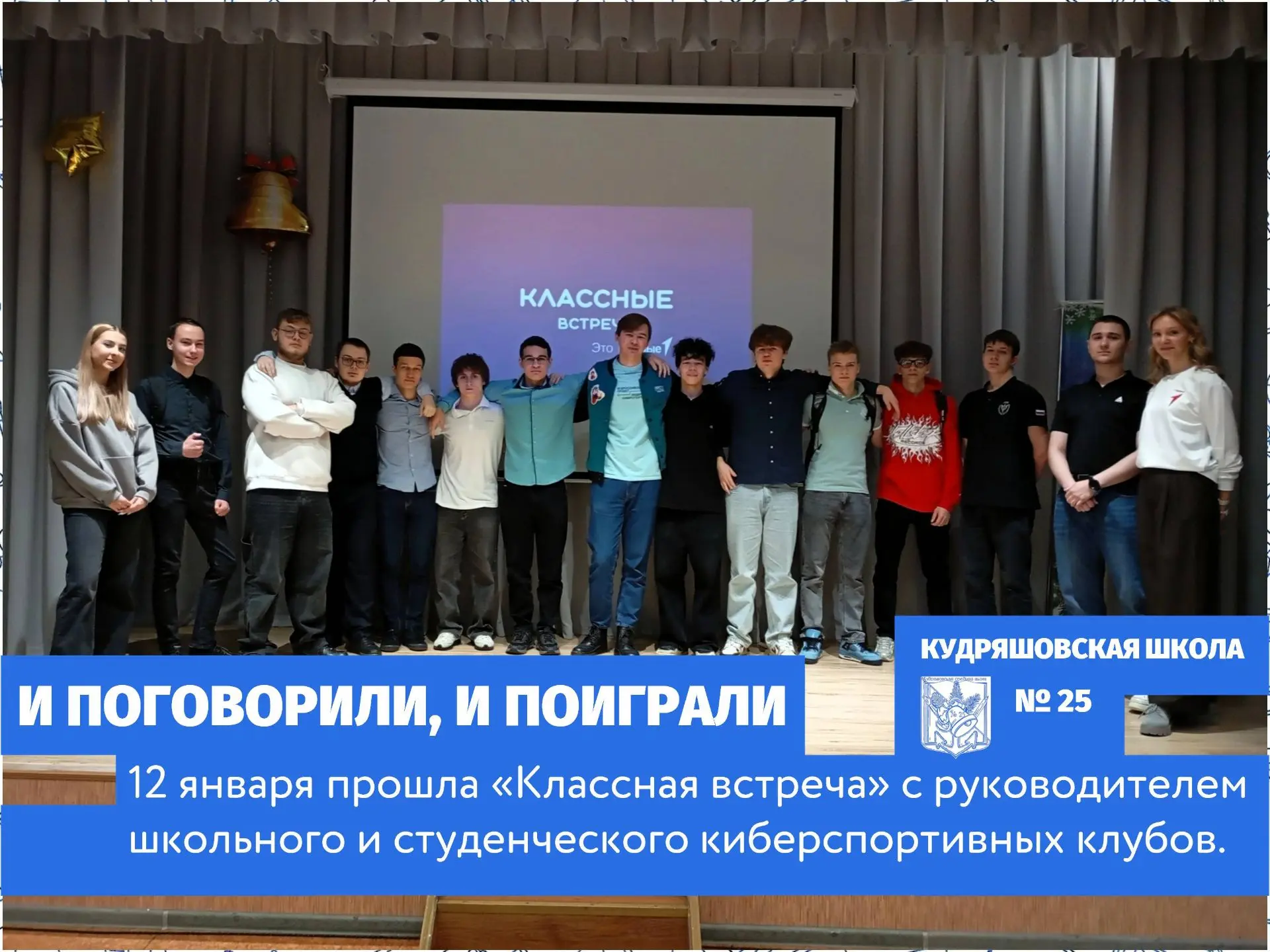 Чтобы несколько облегчить переход от длительного отдыха к учёбе, первичное отделение «Движения Первых» Кудряшовской школы № 25 пригласило учеников 10 и 11 классов на «Классную встречу» по очень актуальной и интересной для ребят теме – 💻🕹🎮 киберспорту. Героем встречи стал молодой педагог, студент НГПУ и руководитель школьного и студенческого киберспортивных клубов Иван Андреевич Харченко. Вместе со своими товарищами по клубу NSPU.Esports он рассказал о киберспорте, его отличии от простого времяпрепровождения с 🎮 приставкой и сходстве с ♟ шахматами. Речь шла о достижениях, любимых персонажах, о том, как стать киберспортсменом и насколько это вредит / помогает учёбе.