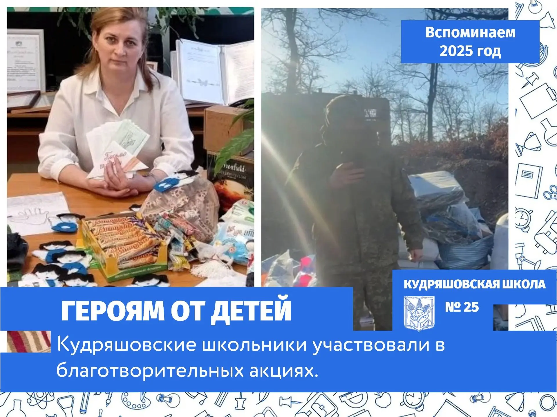 В 🎄❄️ новогодние и рождественские праздники хочется узнавать о ❤️ добрых делах, совершать их или рассказывать про них. Например, в канун Нового года ученики школы № 25 приняли участие в акции команды «Навигаторов детства» «Хранитель Героя». Ребята своими руками изготавливали обереги для ⭐ бойцов в зоне СВО, писали письма, собирали посылки. 26 декабря советник директора по воспитанию Анна Сергеевна Киселева передала подарки в волонтёрское движение «Вместе к Победе», организованное на базе Кудряшовской модельной сельской библиотеки.