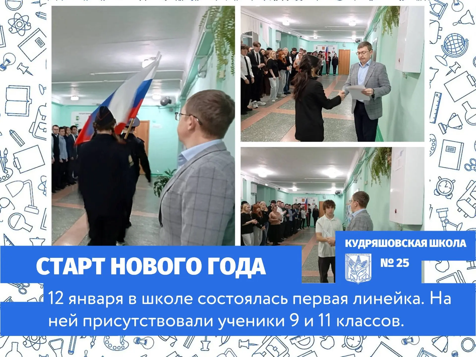 Линейка началась с церемонии вноса 🇷🇺 Государственного флага РФ и исполнения гимна нашей страны. Затем директор школы Максим Сергеевич Веревкин поздравил собравшихся с началом нового года и вручил 🤝 благодарности за активное участие в проведении праздничных мероприятий в конце декабря.