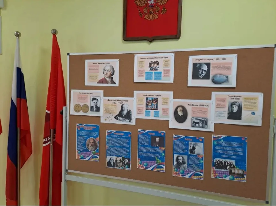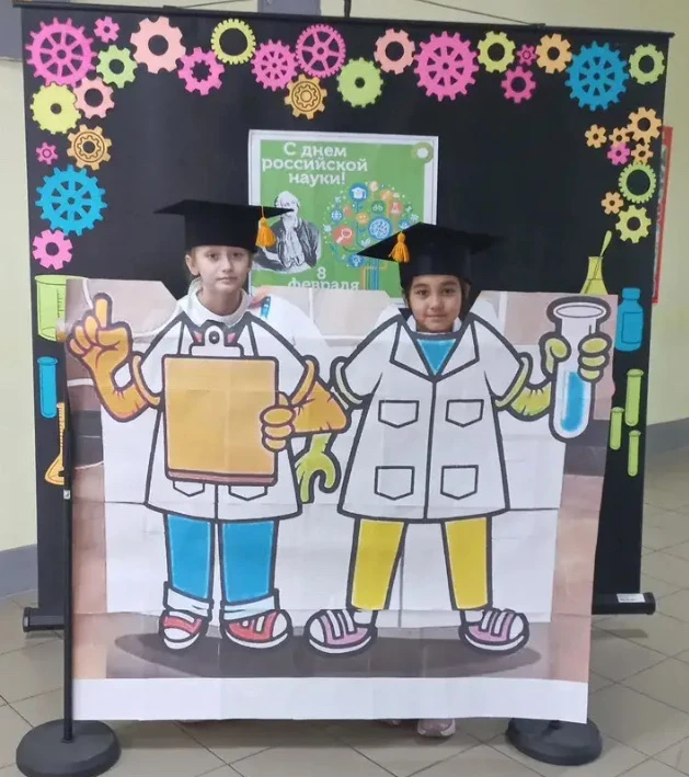 Фотозона дала возможность каждому ученику школы примерить на себе образ учёного, а информационный стенд рассказал о великих достижениях в области российской науки.