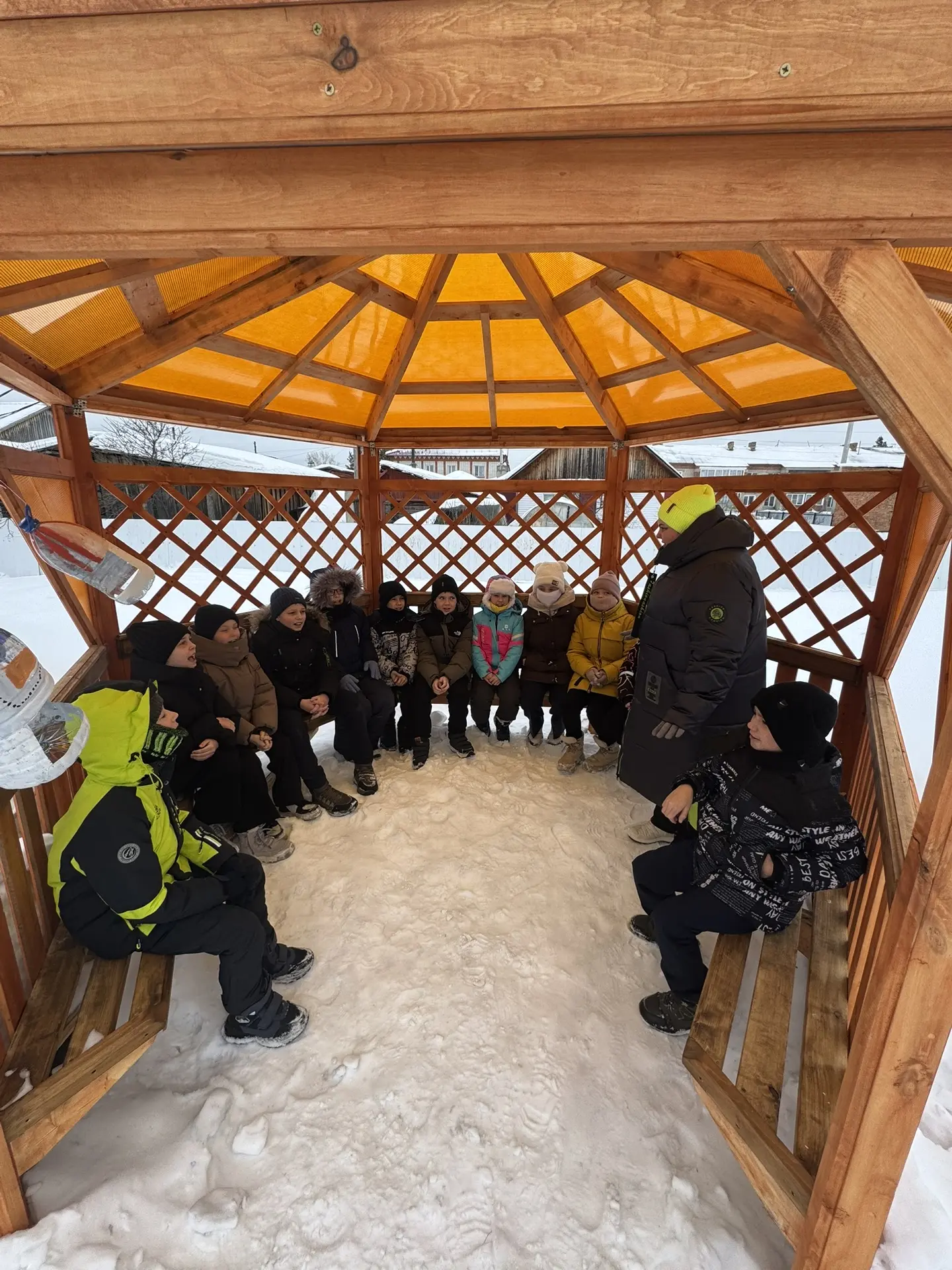 Давайте вместе сделаем школьную беседку местом, где каждый найдёт уголок для себя — даже в холодные дни!
