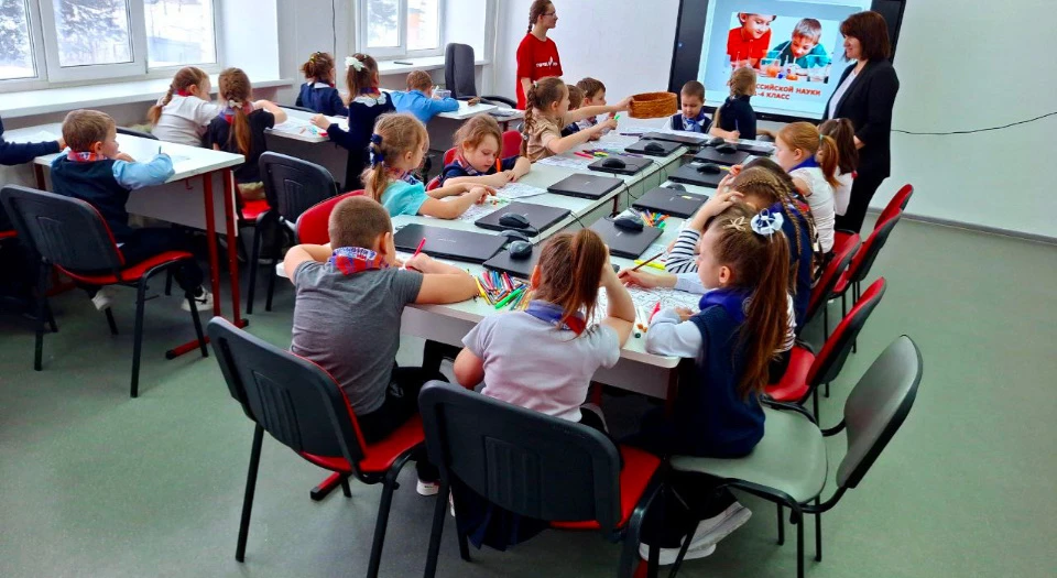 Ребята начальных классов путешествовали в волшебном мире «Простая наука для детей», где в ходе мероприятия посмотрели познавательный фильм, обсудили интересные опыты, раскрасили картинки по теме.