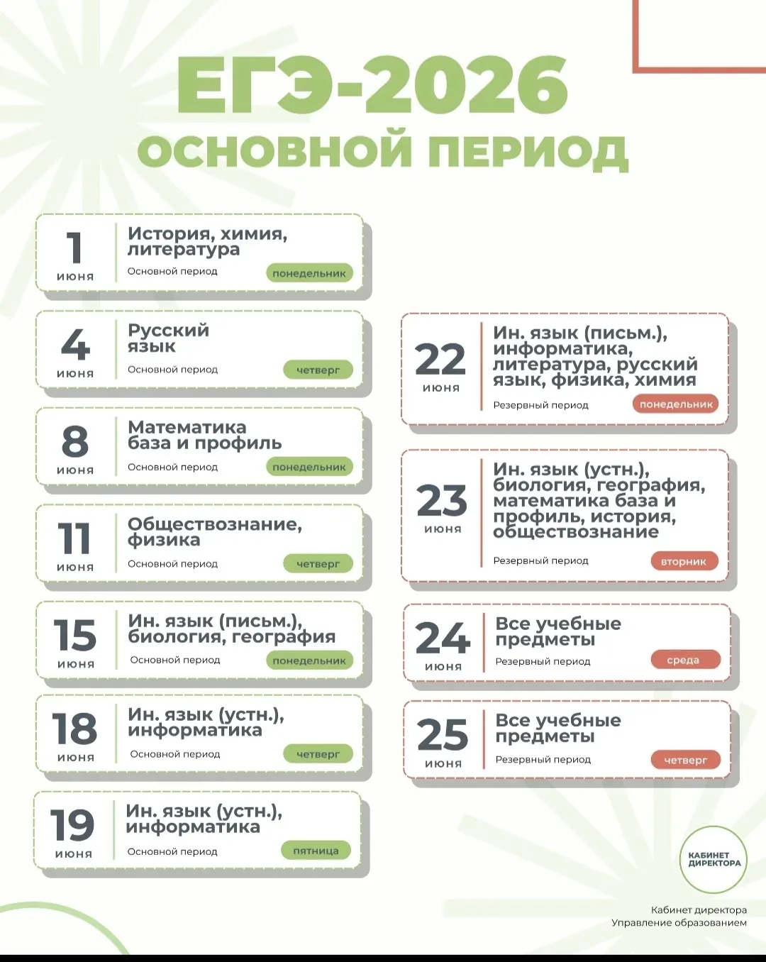 - следить за расписанием, отменами и заменами уроков