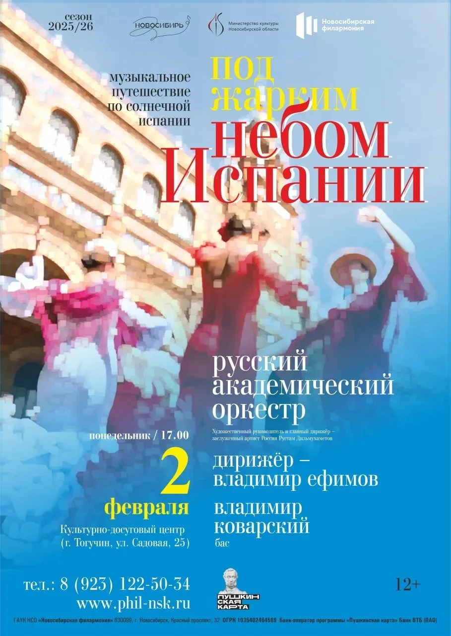 Дорогие зрители! Новосибирская филармония приглашает Вас 2 февраля в 17.00 на концерт русского академического оркестра "Под жарким небом Испании". Цена билета 250 руб. Билеты уже в продаже!