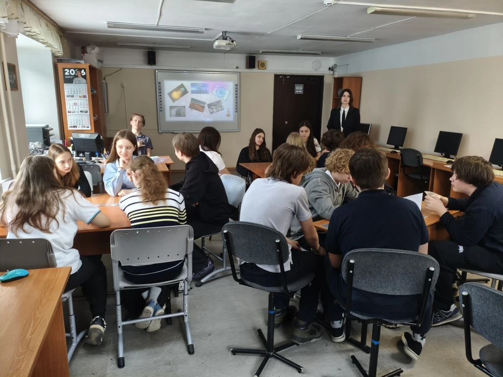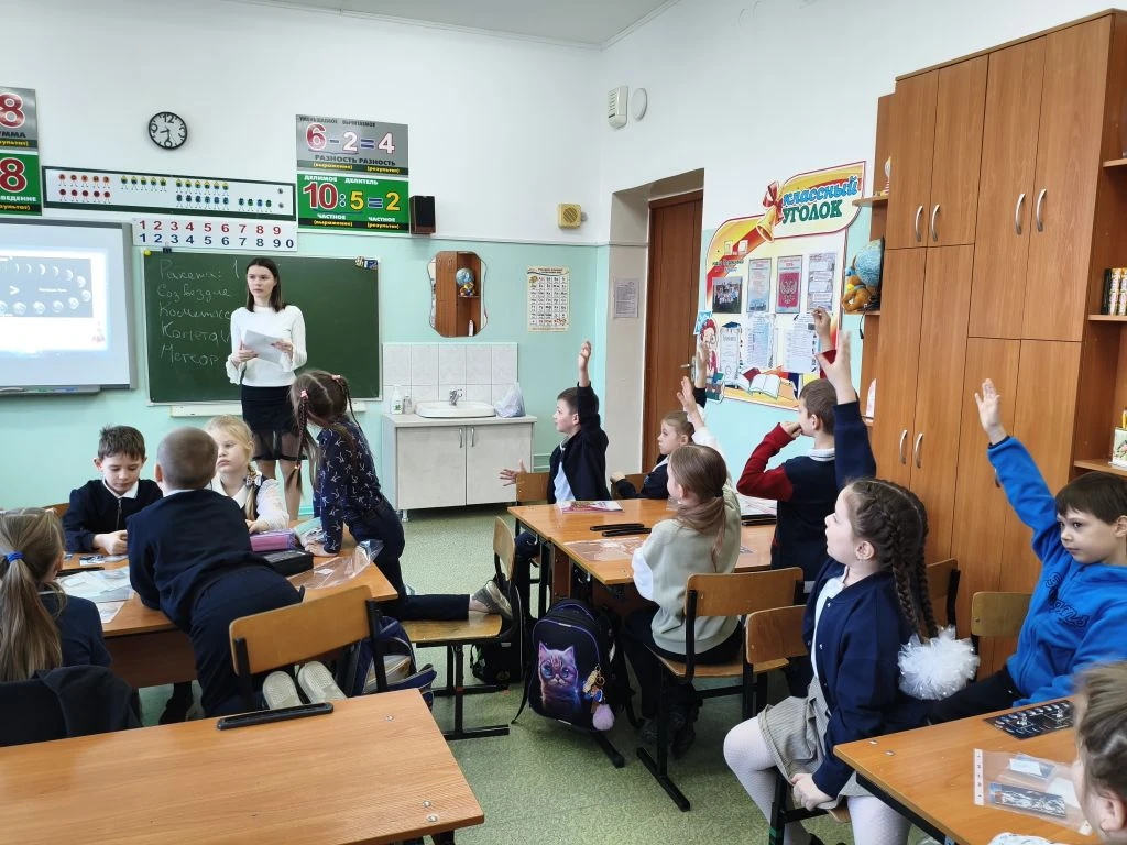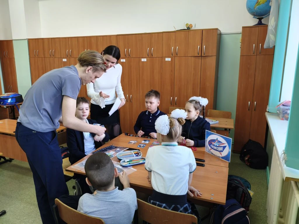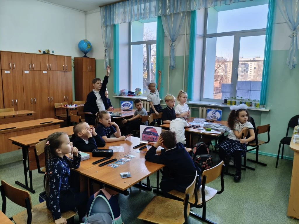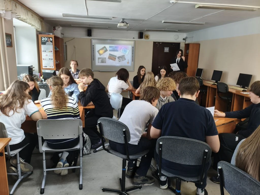 Учащиеся 9 «В» класса Александр Ваганов и Анна Лямкина (под руководством классного руководителя Евгении Юрьевны Рыбалко) провели для учеников 1А (классный руководитель Ольга Алексеевна Озерец) и 8А (классный руководитель Рыбалко Евгения Юрьевна) классов интеллектуально‑познавательную викторину «Космические эрудиты».