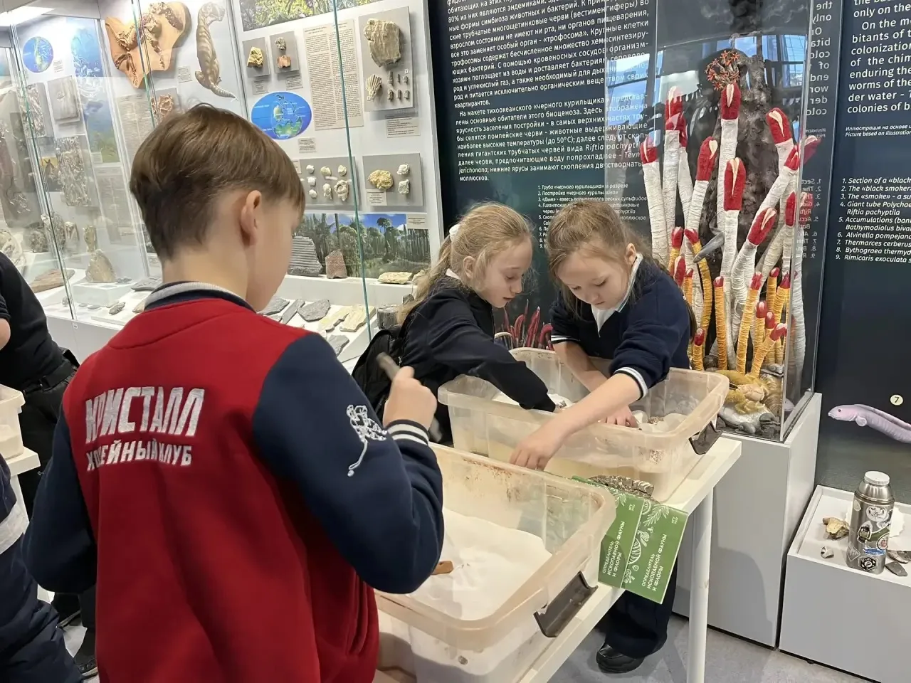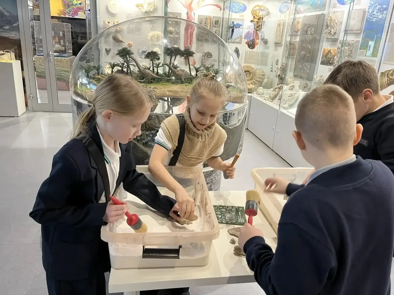 13 февраля наш 3 «А» класс посетил Научно-образовательный центр «Эволюция Земли» НГУ. Ребят встретили экскурсоводы и провели им интересную экскурсию. На экскурсии ребята узнали много нового о минеральных ископаемых, древних животных, о строение Земли. Также проводился мастер-класс по раскопке ископаемых с помощью археологических инструментов.