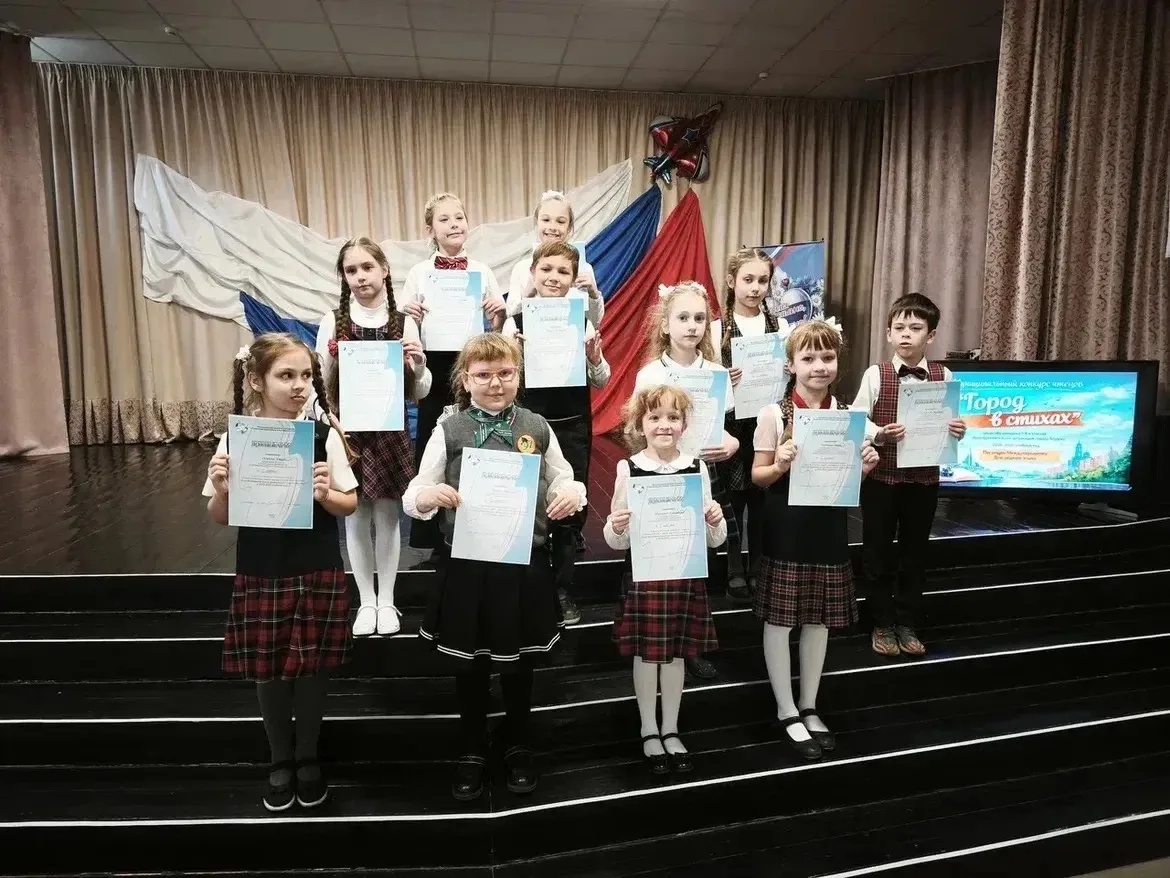 Сегодня учащиеся нашего Лицея приняли участие в городском конкурсе « Город в стихах». Много красивых и нежных слов было сказано о нашем любимом городе. Поэты воспели наш город в стихах, а ребята своим выразительным чтением донесли эти чувства до зрителей и жюри. Мы аплодируем им, поздравляем с призовыми местами: Алексеев Алесей, ученик 1а класса, занял 2 место в конкурсе, Рудомётова Екатерина, ученица 2а класса, заняла 3 место, Калачикова Стефания, ученица 3а класса, заняла почётное 1 место, Чайковский Тимофей, ученик 4 б класса, занял 3 место.