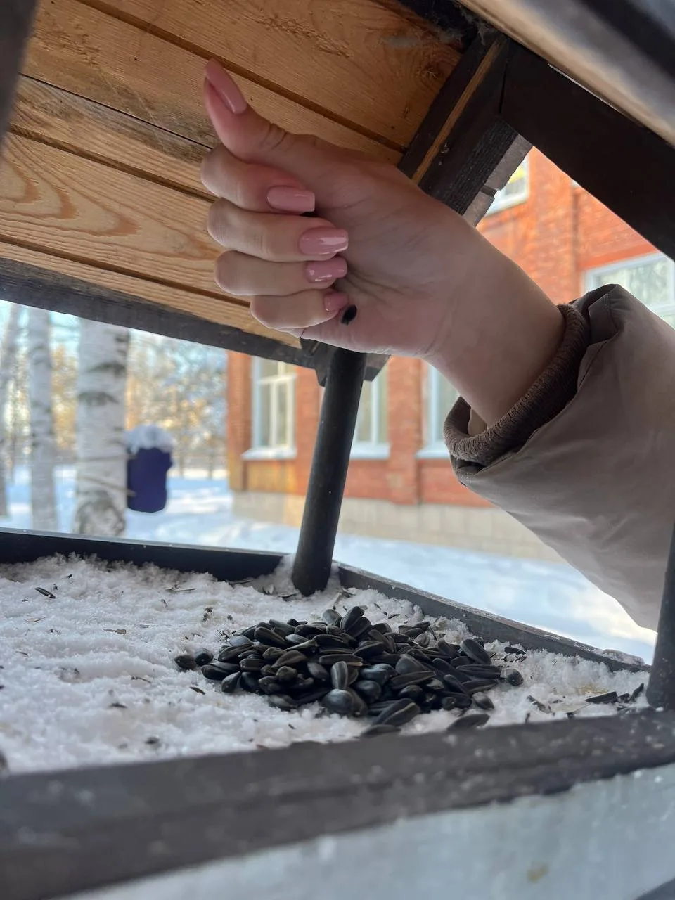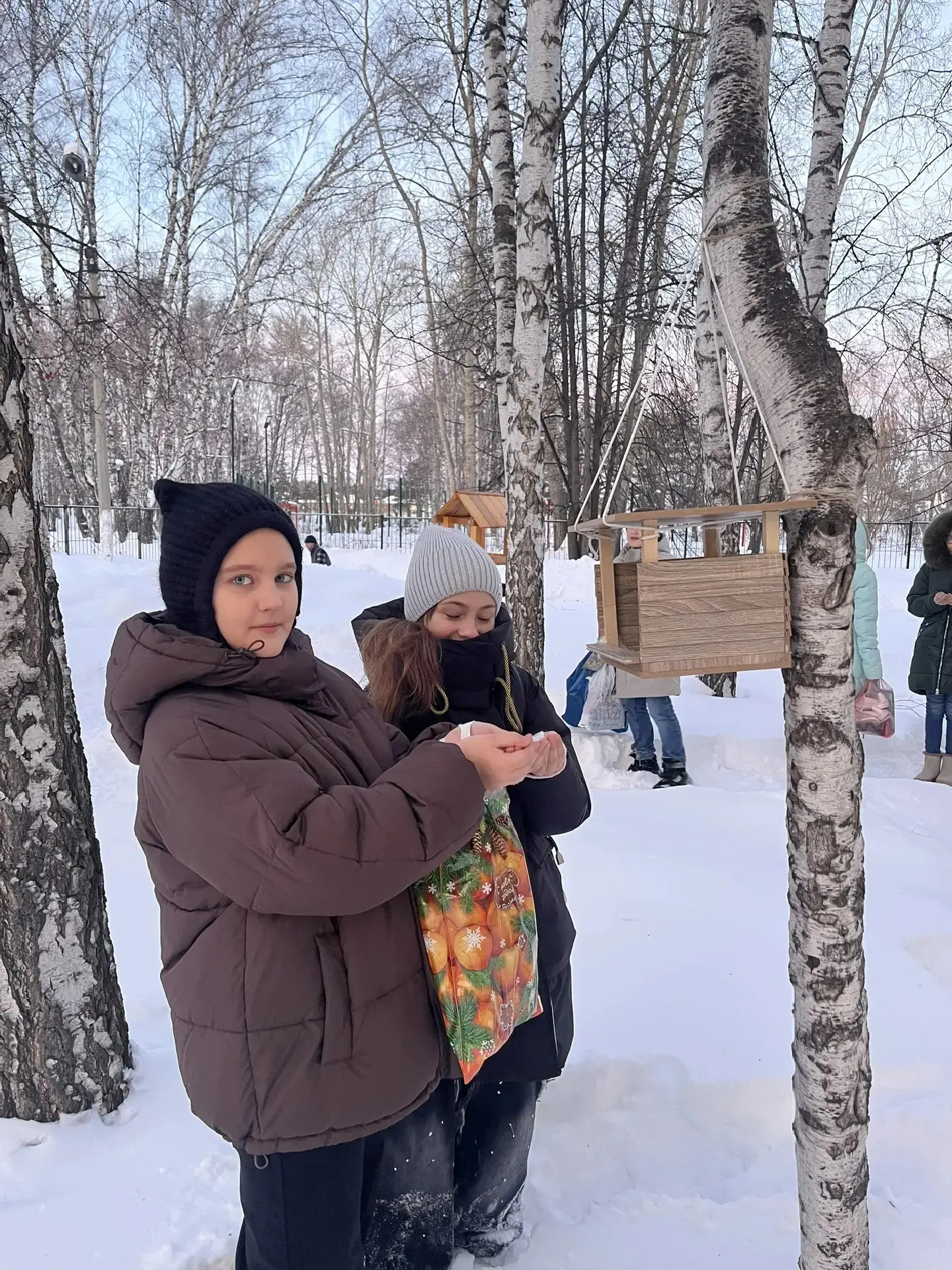 Активисты Движения Первых из 8 В класса вместе с классным руководителем Валентиной Шерстневой наполнили кормушки вкусным угощением.