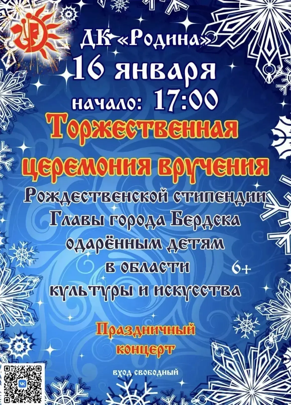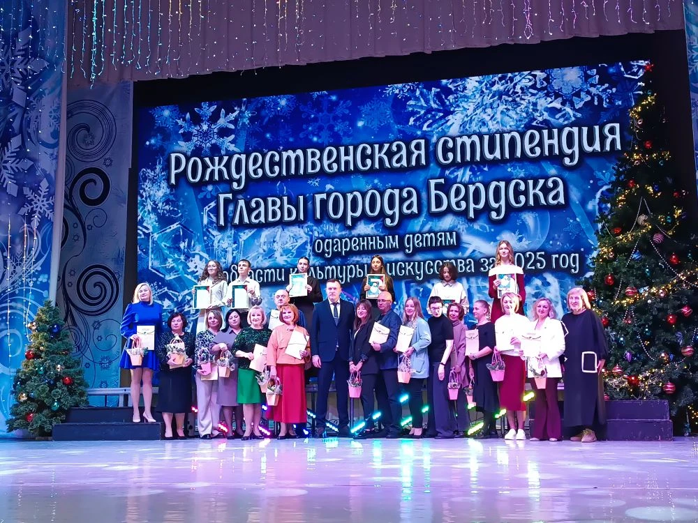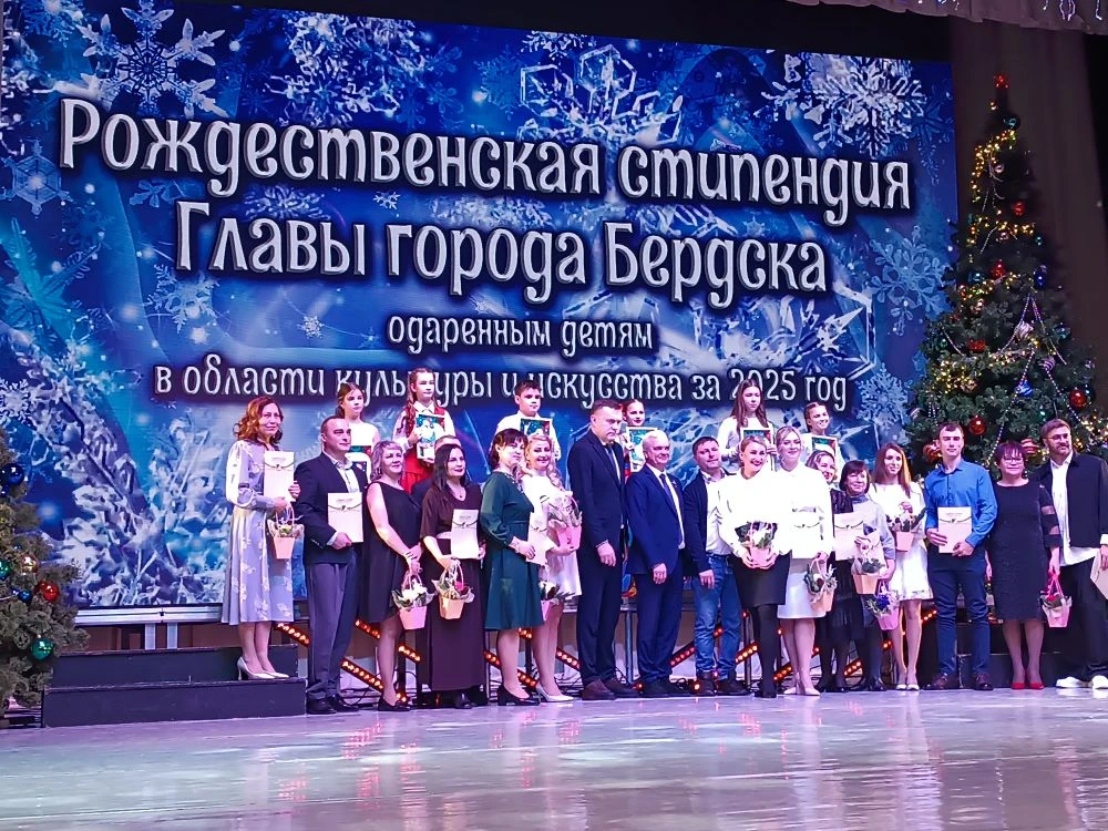 Стипендиаты показали зрителям свои таланты, подарив праздничное настроение на торжественной церемонии вручения Рождественской стипендии Главы города Бердска одарённым детям в области культуры и искусства по итогам 2025 года в большом зале ДК «Родина».