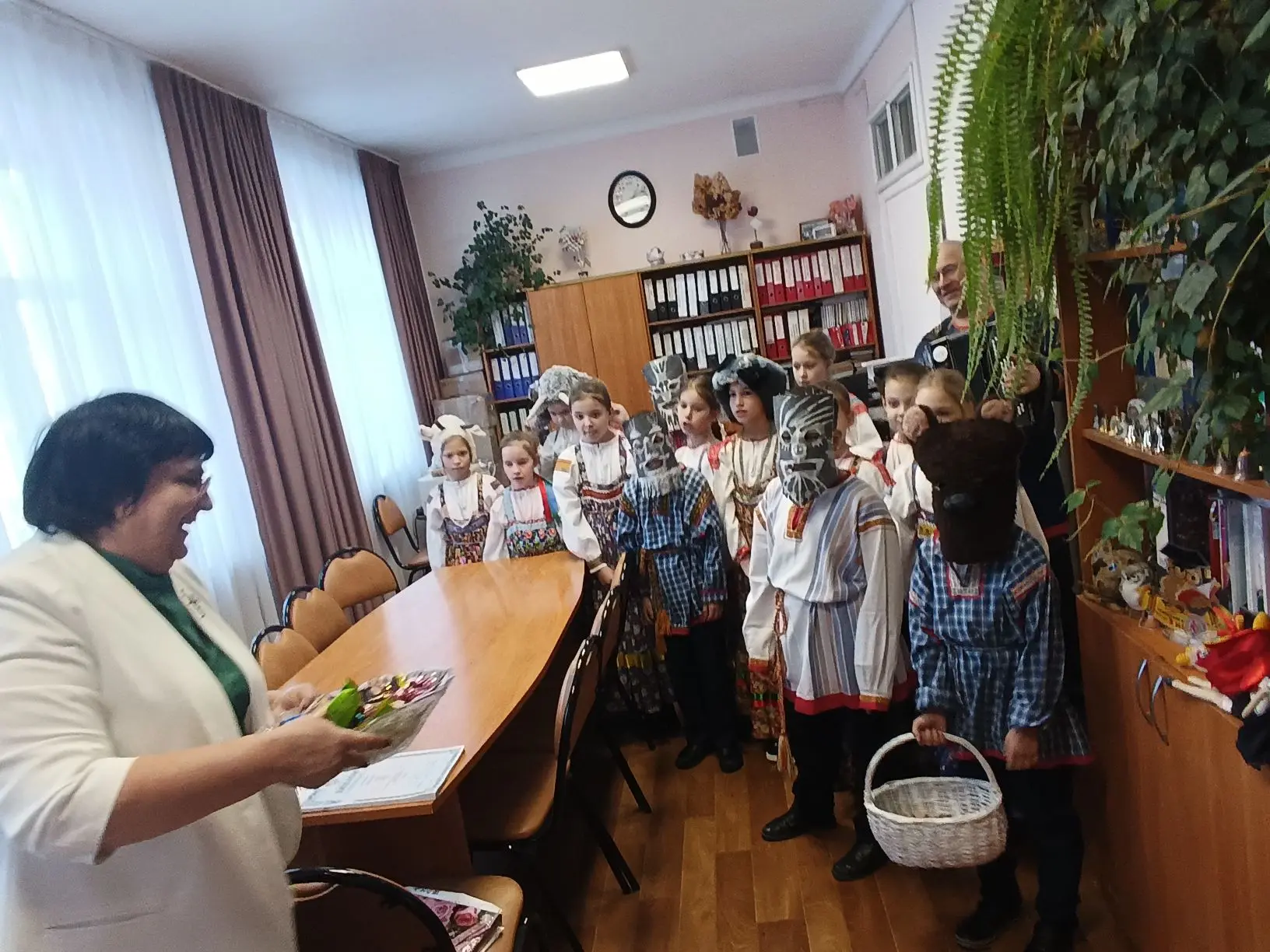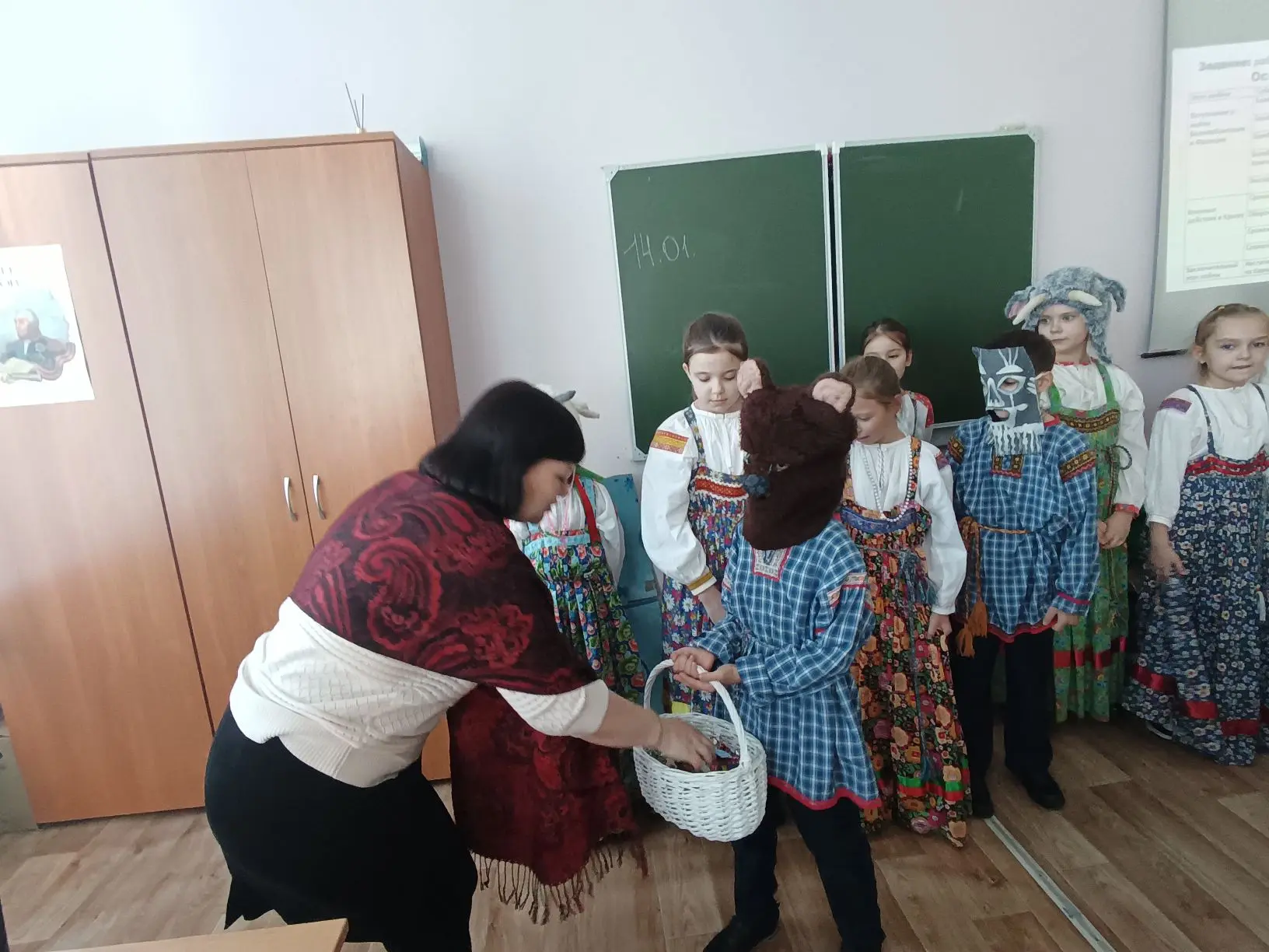 В нарядных костюмах, с песнями и закличками, с пожеланиями богатства и счастья ряженые обошли ребят. Хозяева были щедры: угощали гостей сладостями.