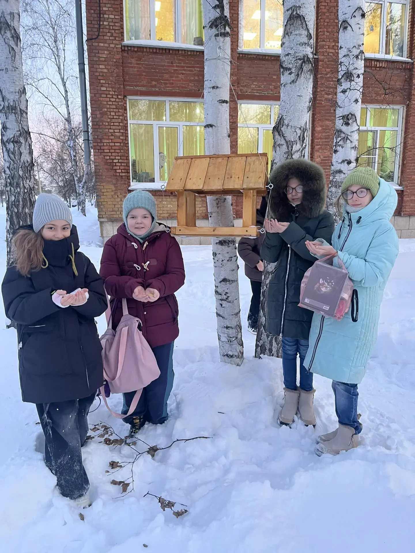 Педагоги и обучающиеся регулярно подкармливают пернатых питомцев на пришкольном участке.