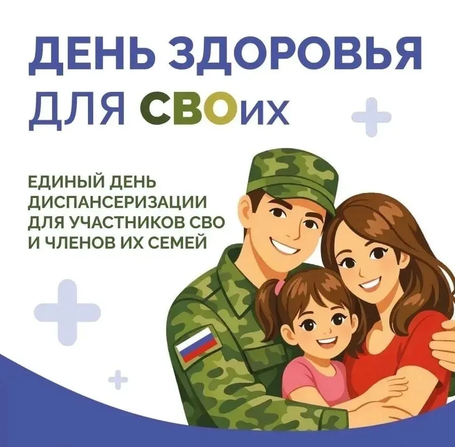 Мы объявляем о проведении специальной акции по диспансеризации для участников СВО, членов их семей, а также всех ветеранов боевых действий. Забота о себе — это забота о близких. Пройдите комплексное медицинское обследование всего за один визит!