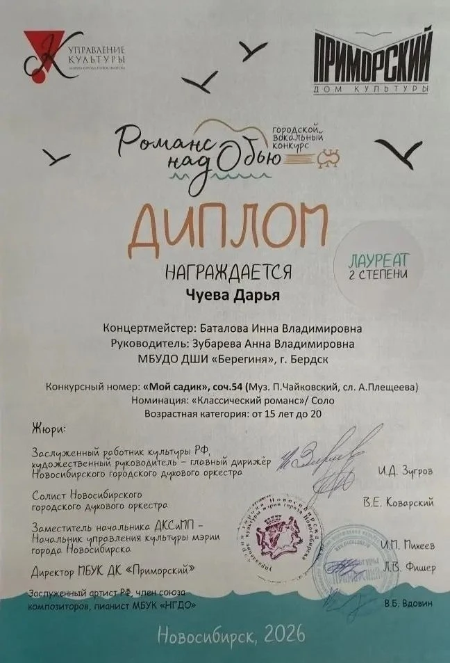 Желаем ей дальнейших успехов, вдохновения и новых творческих побед!