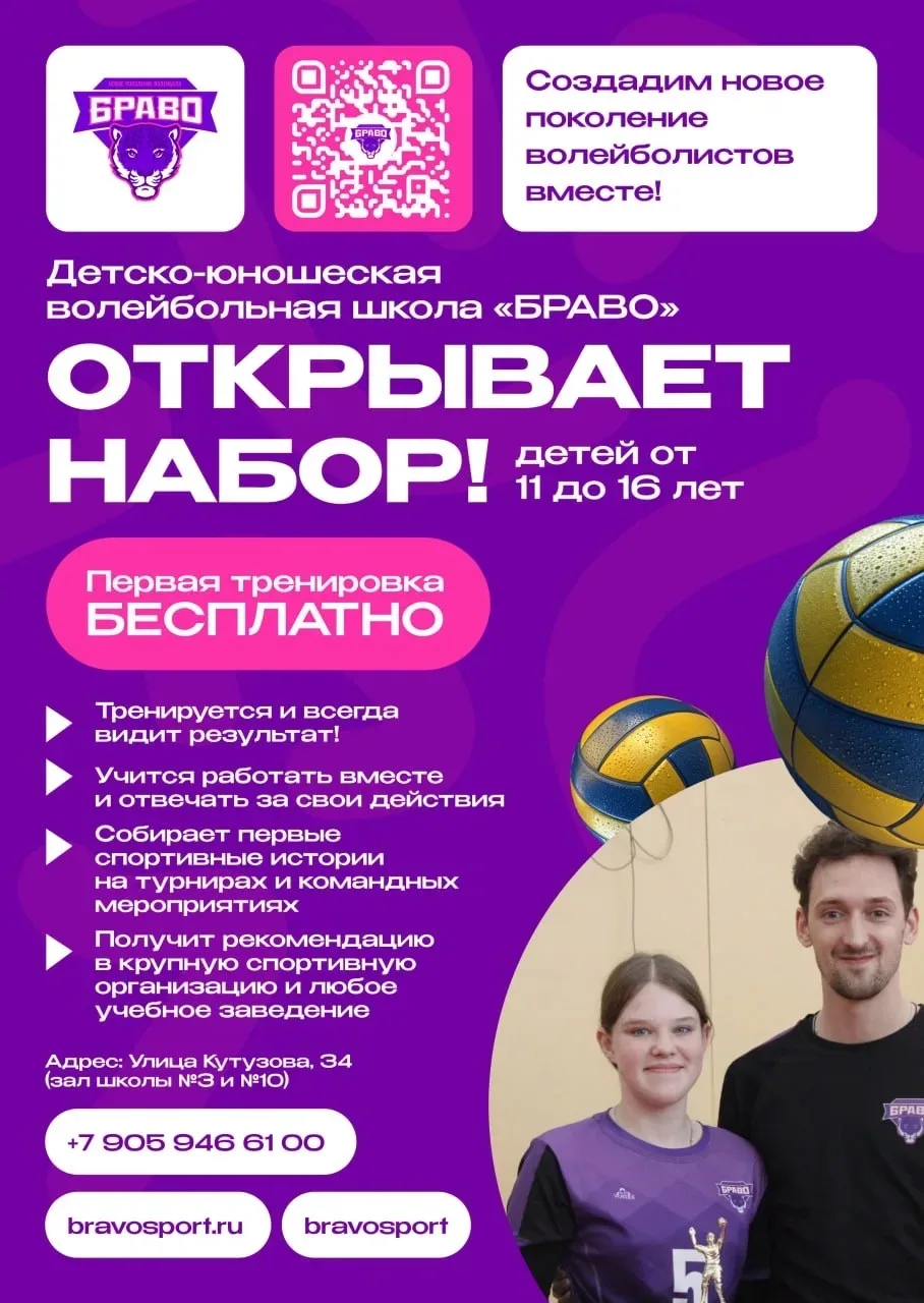 🏐 Волейбольная школа Браво теперь и у вас в школе! 💜