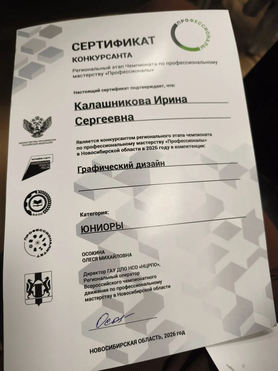 Ирина стала участницей престижного Чемпионата "Профессионалы" в номинации "Графический дизайн"! Это достижение подтверждает её высокий уровень мастерства и стремление к самосовершенствованию.