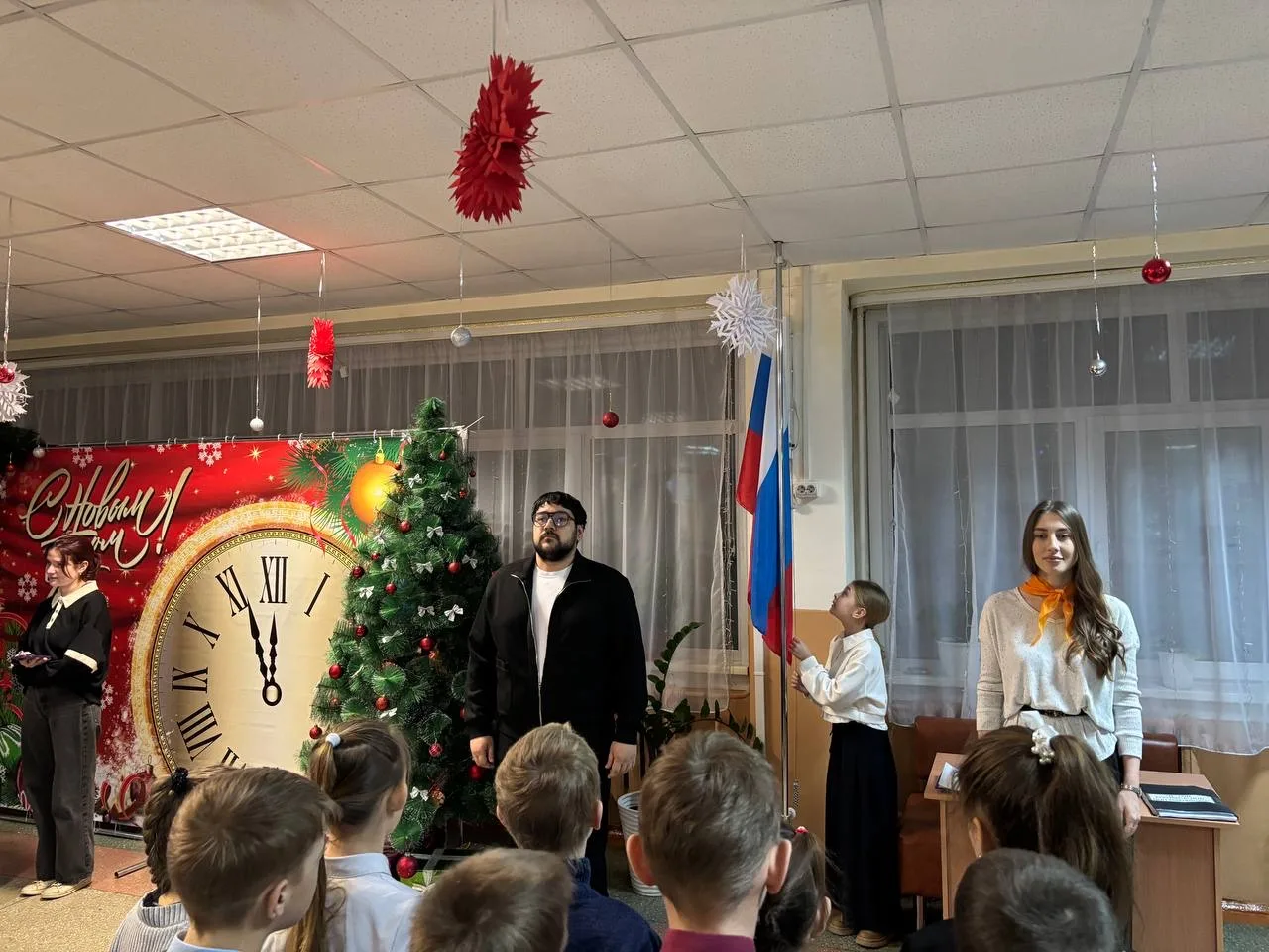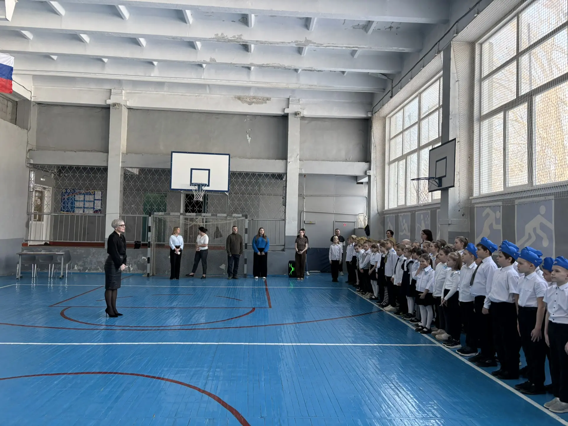 Вчера состоялась первая еженедельная линейка поднятия флага Российской Федерации 🇷🇺✨. После исполнения гимна советник директора по воспитанию сообщил детям о предстоящих важных событиях недели и анонсировал тему Разговора о важном 🎞️