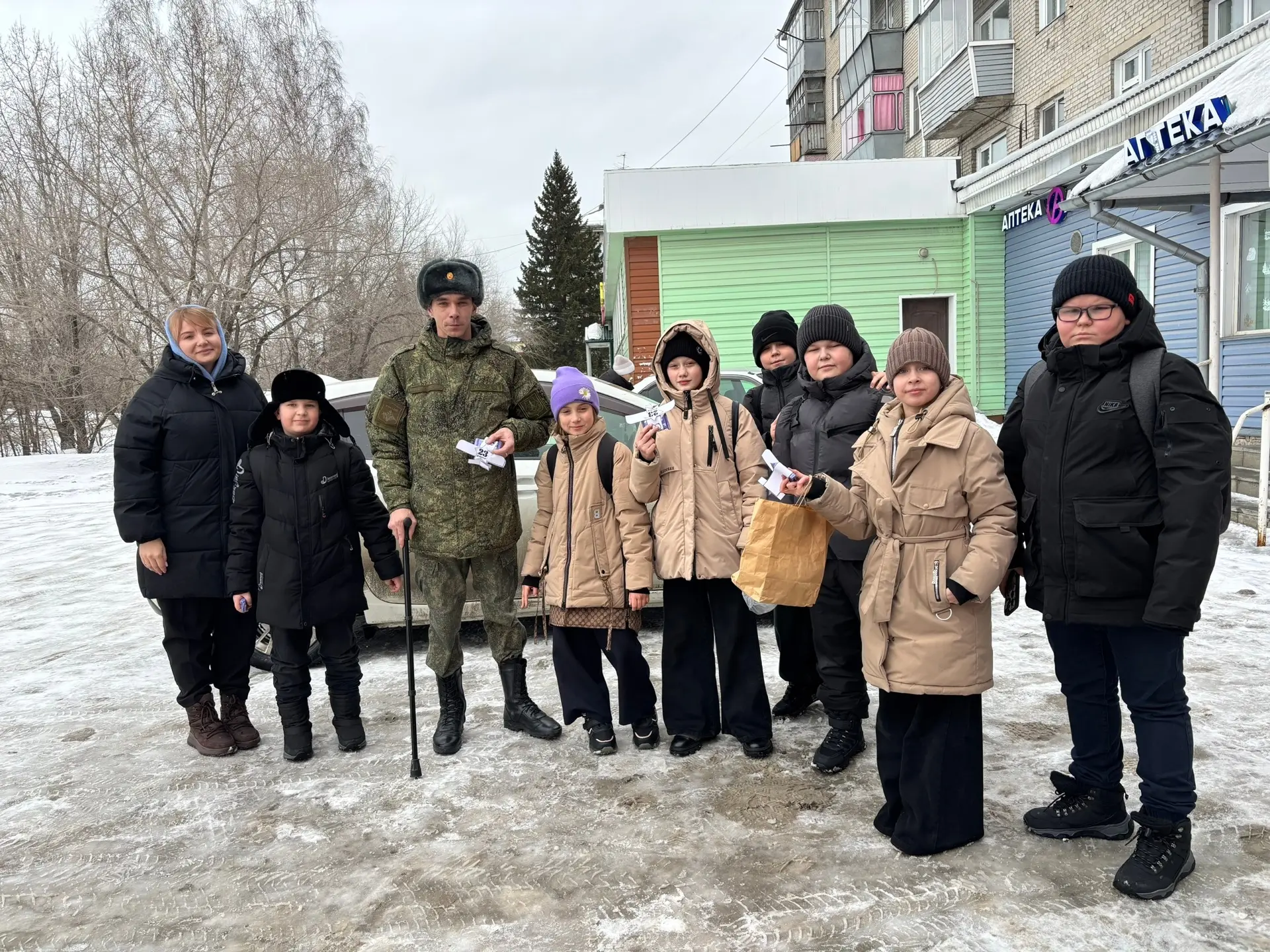 Наших дорогих ветеранов сопровождали директор школы Елена Владимировна Баймлер и представители профсоюзной организации: Максим Сергеевич Арещенко и Любовь Викторовна Потапова.