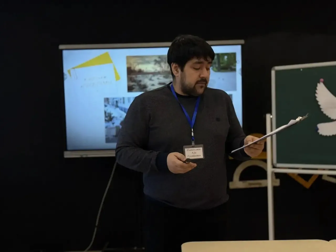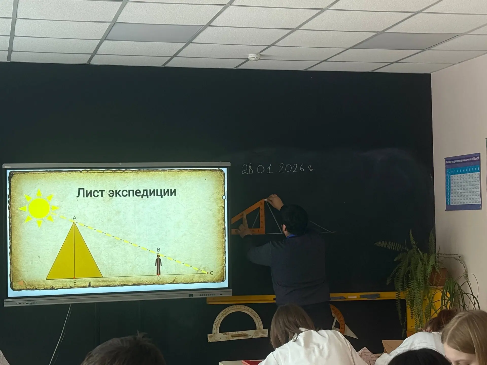 Для открытого занятия была выбрана непростая, но очень важная тема в 8-м классе — «Подобие треугольников». 📐 Построить идеальную логику, увлечь ребят геометрией и за короткое время найти общий язык с незнакомым классом — задача для настоящего мастера, и Али Гусейнович справился с ней блестяще!