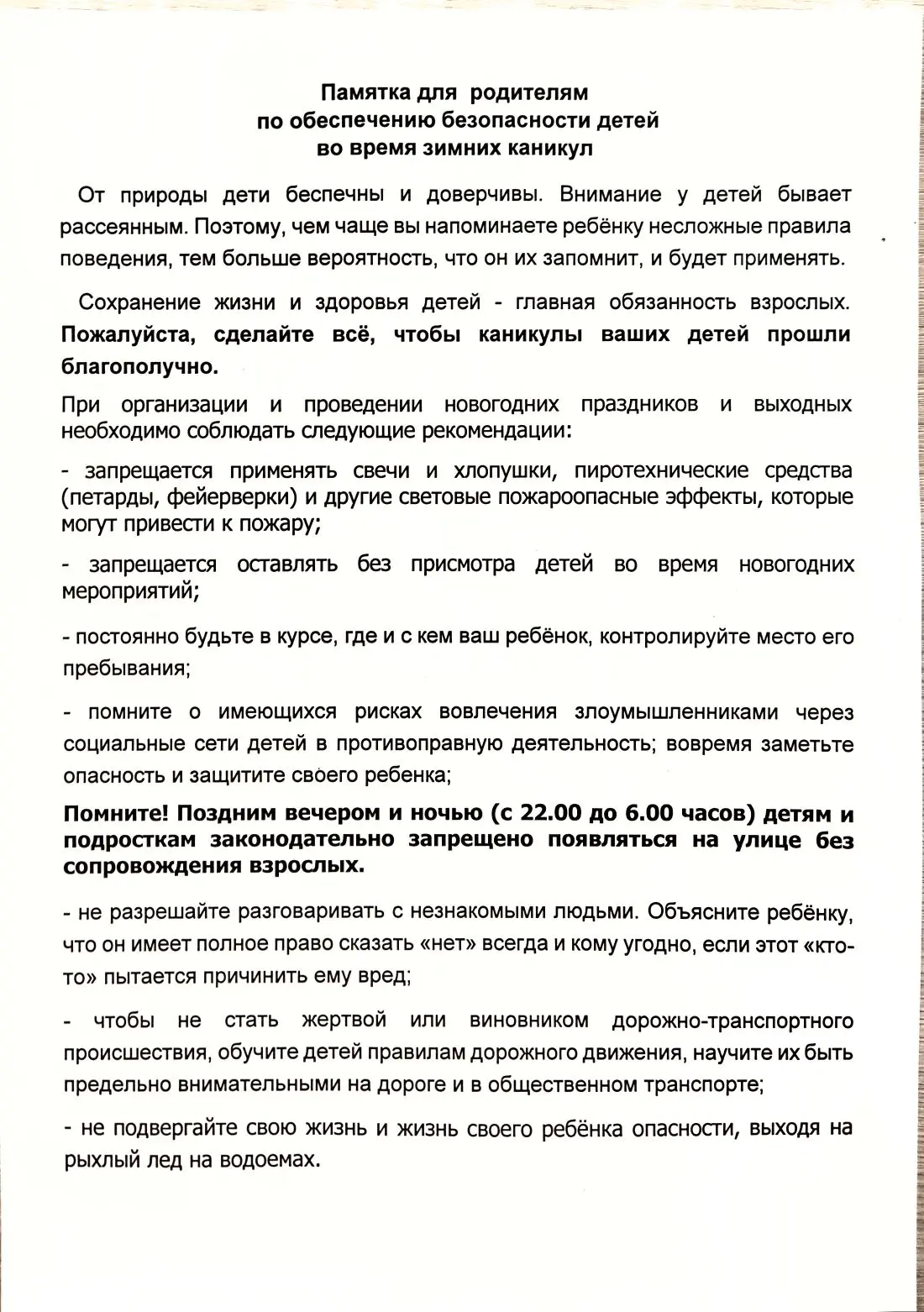 👨👩👧👦 Памятка для родителей (безопасность и досуг)
