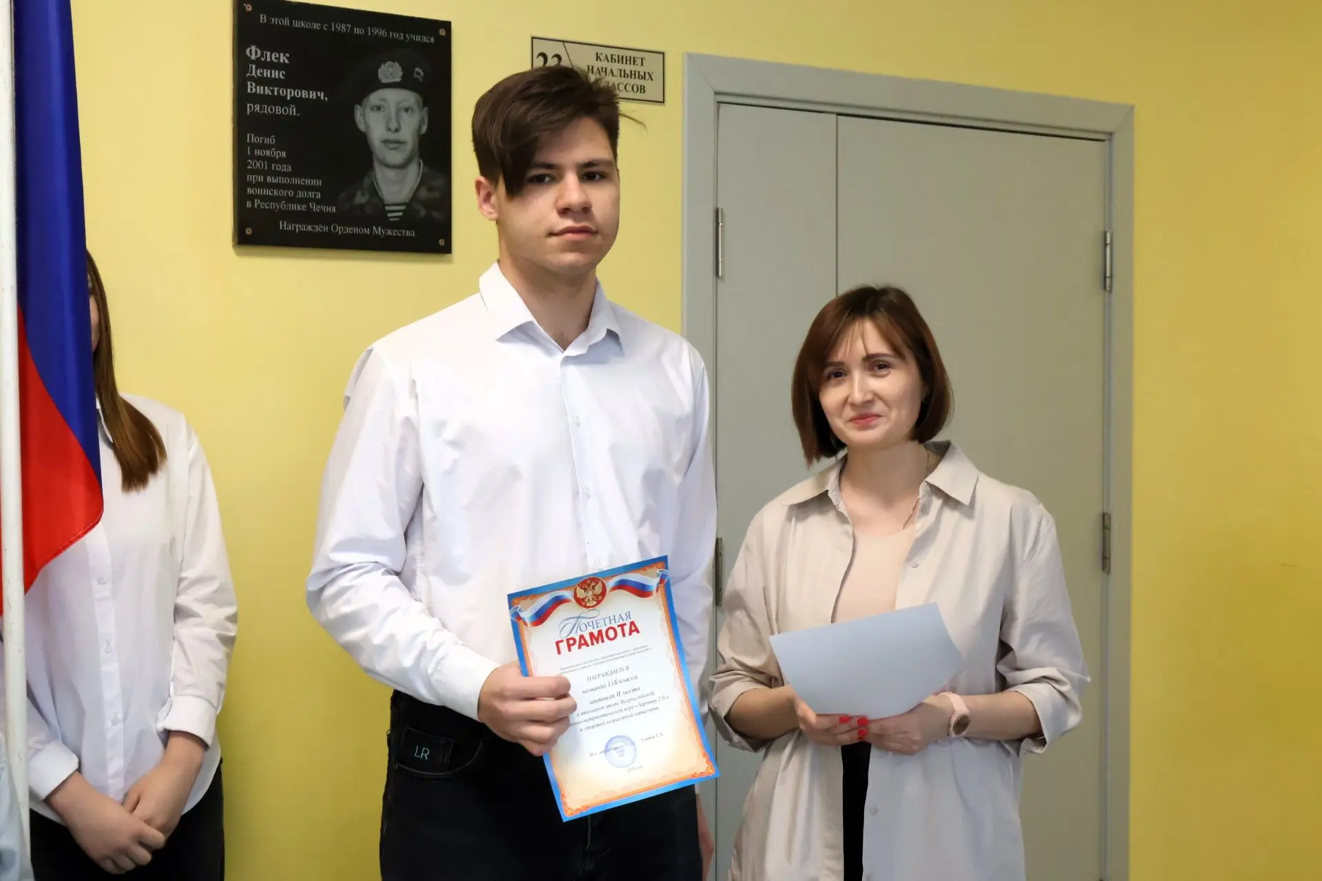 Гвардии младший сержант Денис Викторович Флек родился в Куйбышеве 11 ноября 1980 года. После окончания девяти классов нашей школы юноша поступил в сельскохозяйственный техникум «Куйбышевский» на отделение «Зоотехния».