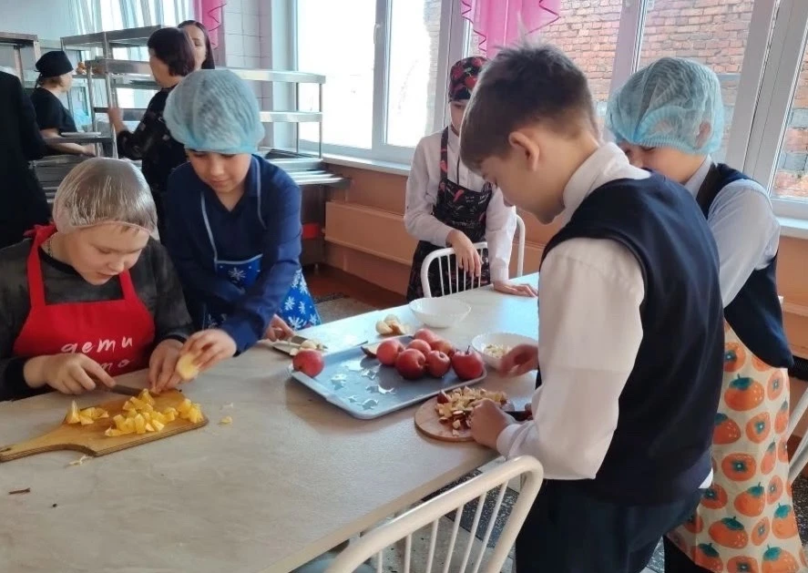 Затем Виктория Викторовна показала, как быстро и просто приготовить полезный перекус «на скорую руку» ⏱️🍏, не тратя много времени и сил. В качестве примера ребята вместе с поваром взялись за приготовление «Фруктового салата» — лёгкого, витаминного и очень вкусного блюда! 🍌🍊🍓