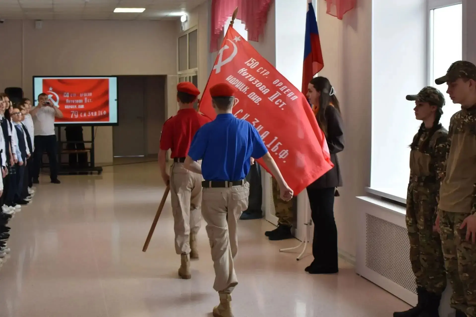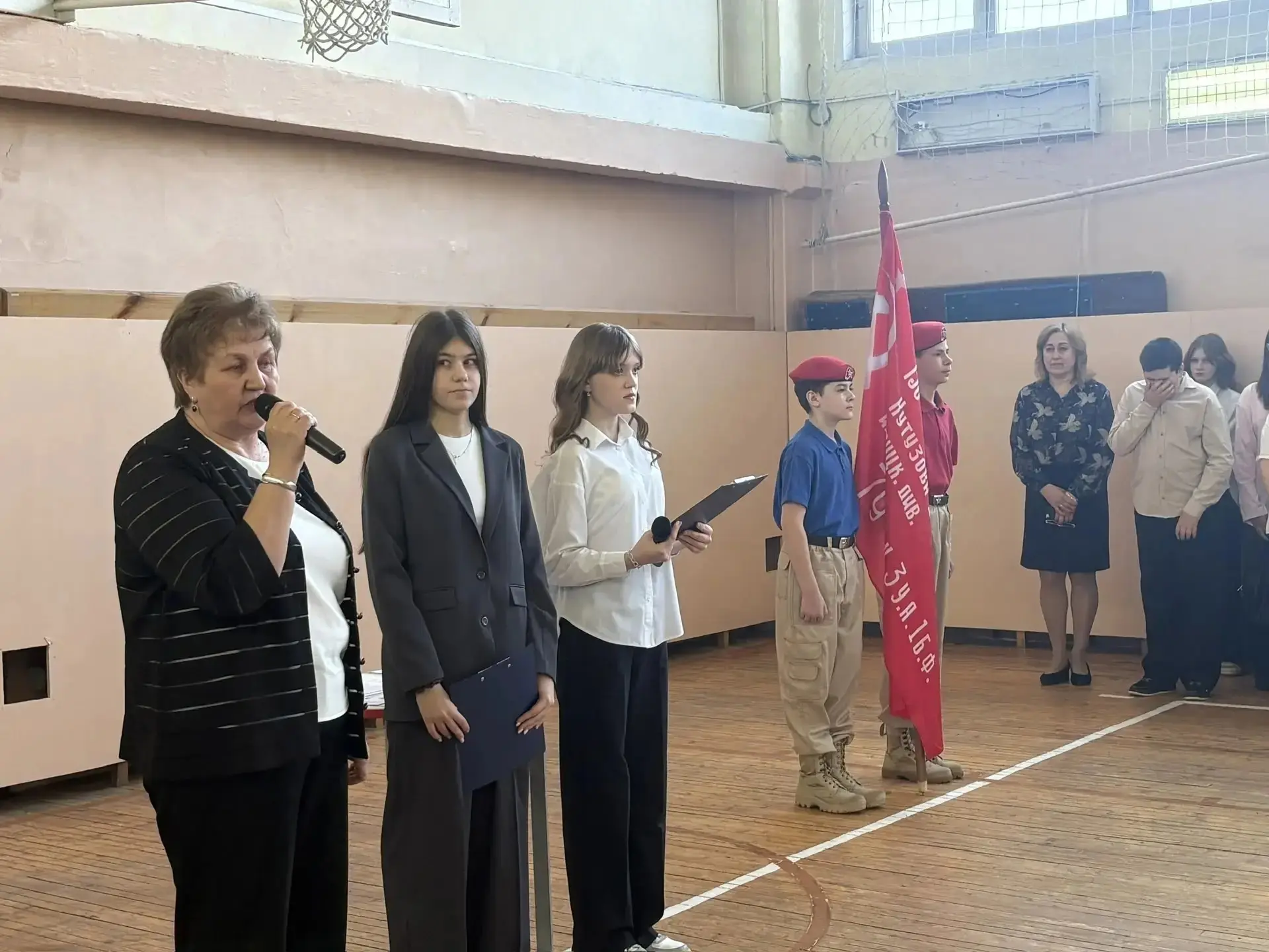 1⃣3⃣апреля, на традиционной общешкольной линейке, Знамя торжественно установили в стенах школы. Директор школы, Татьяна Семёновна Леонова, обратилась к ребятам с тёплыми и вдохновляющими словами. Она напомнила: быть хранителем знамени — это великая честь и важный долг перед теми, кто сражался за наше будущее, и перед теми, кто будет помнить после нас.