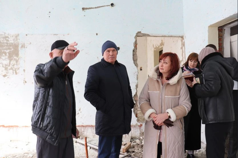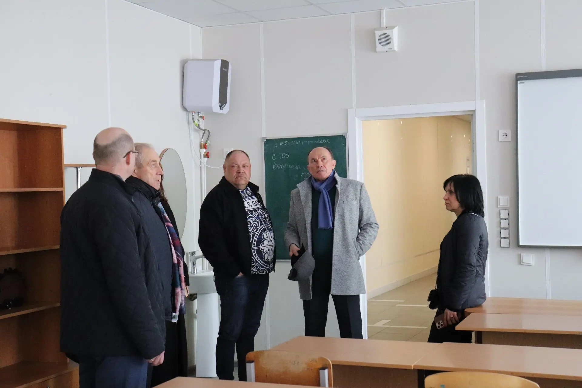 Во время выезда Вячеслав Владимирович Ярманов вместе с руководством подрядной организации ГК «МИР» и иными участниками совещания провели подробный осмотр объекта и обстоятельно обсудили выполнение предусмотренных проектом решений по каждому отдельному помещению, начиная от учебных классов и заканчивая специализированными подсобными помещениями.