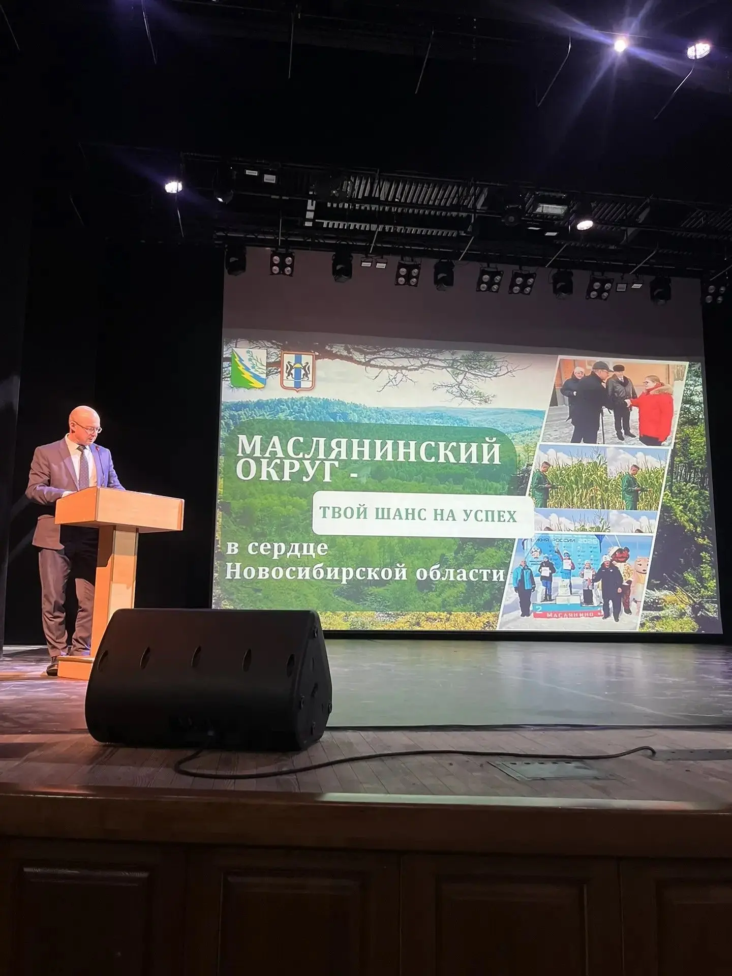 Перед студенческой аудиторией выступил Глава Маслянинского муниципального округа Вячеслав Владимирович Ярманов. Он рассказал о перспективах развития территории, возможностях для работы и отдыха, а также о преимуществах жизни в Маслянинском округе.