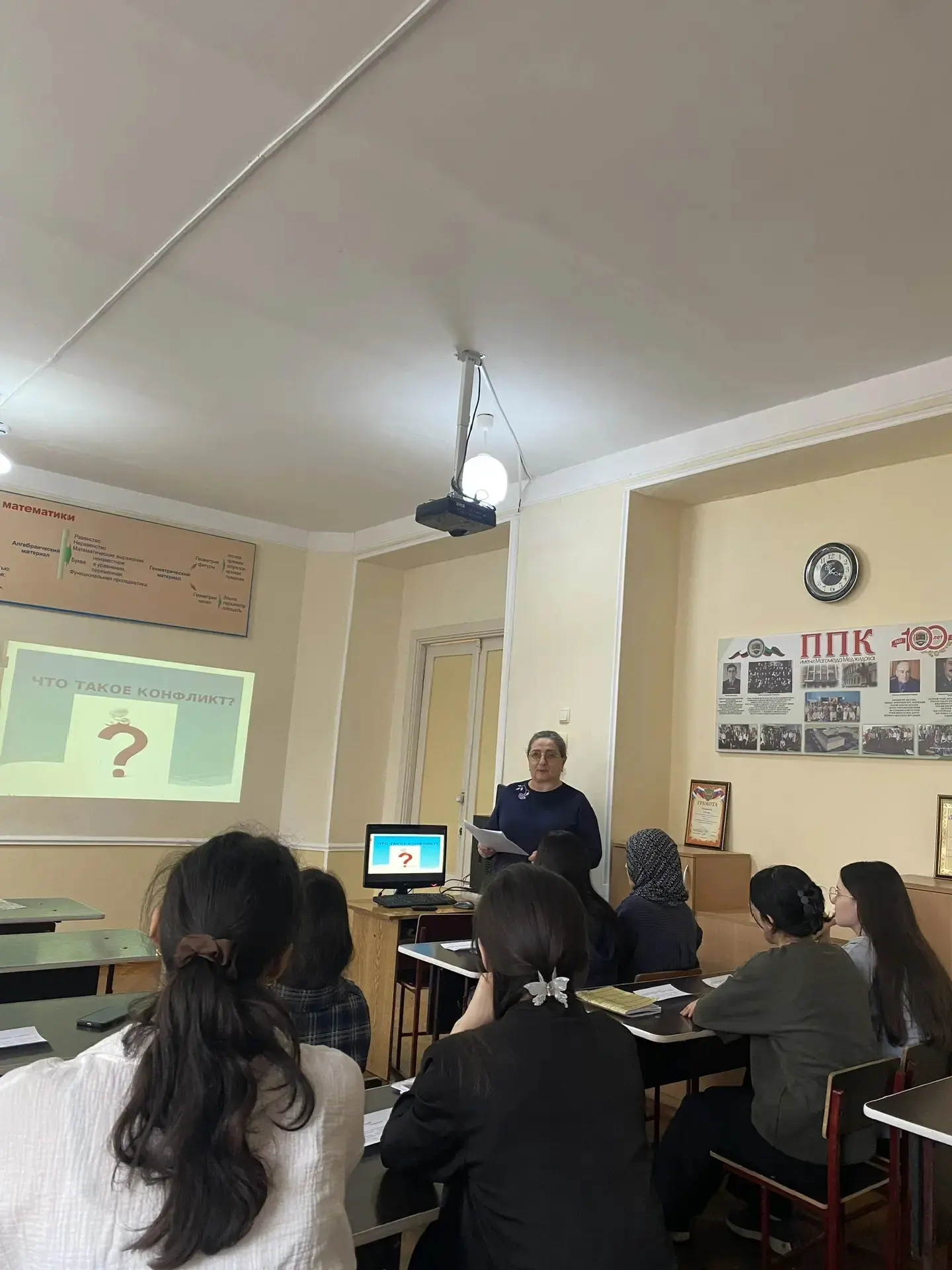 В начале классного часа Абидат Алиевна рассказал об истории праздника, о его значении и традициях празднования в разных странах.