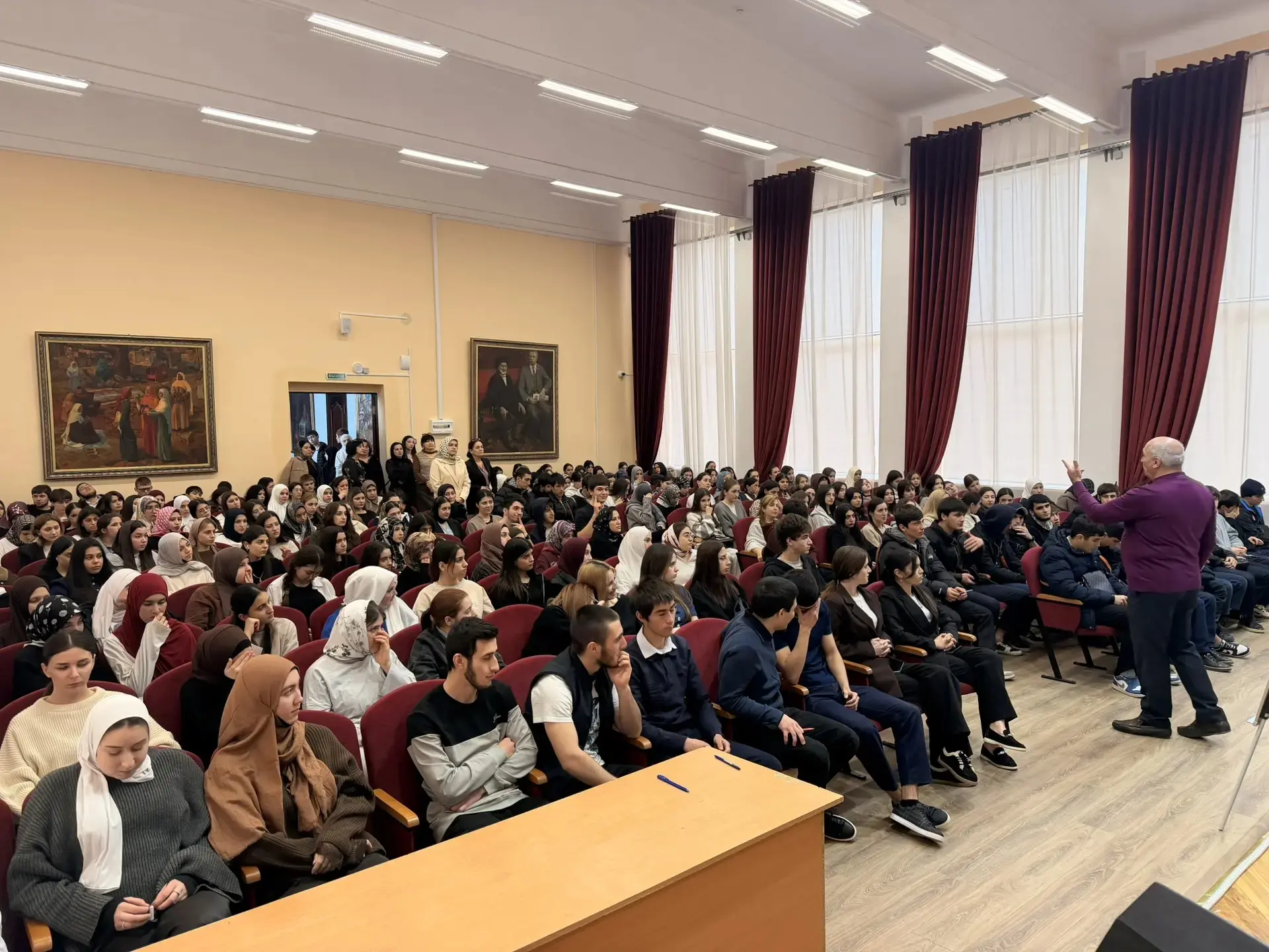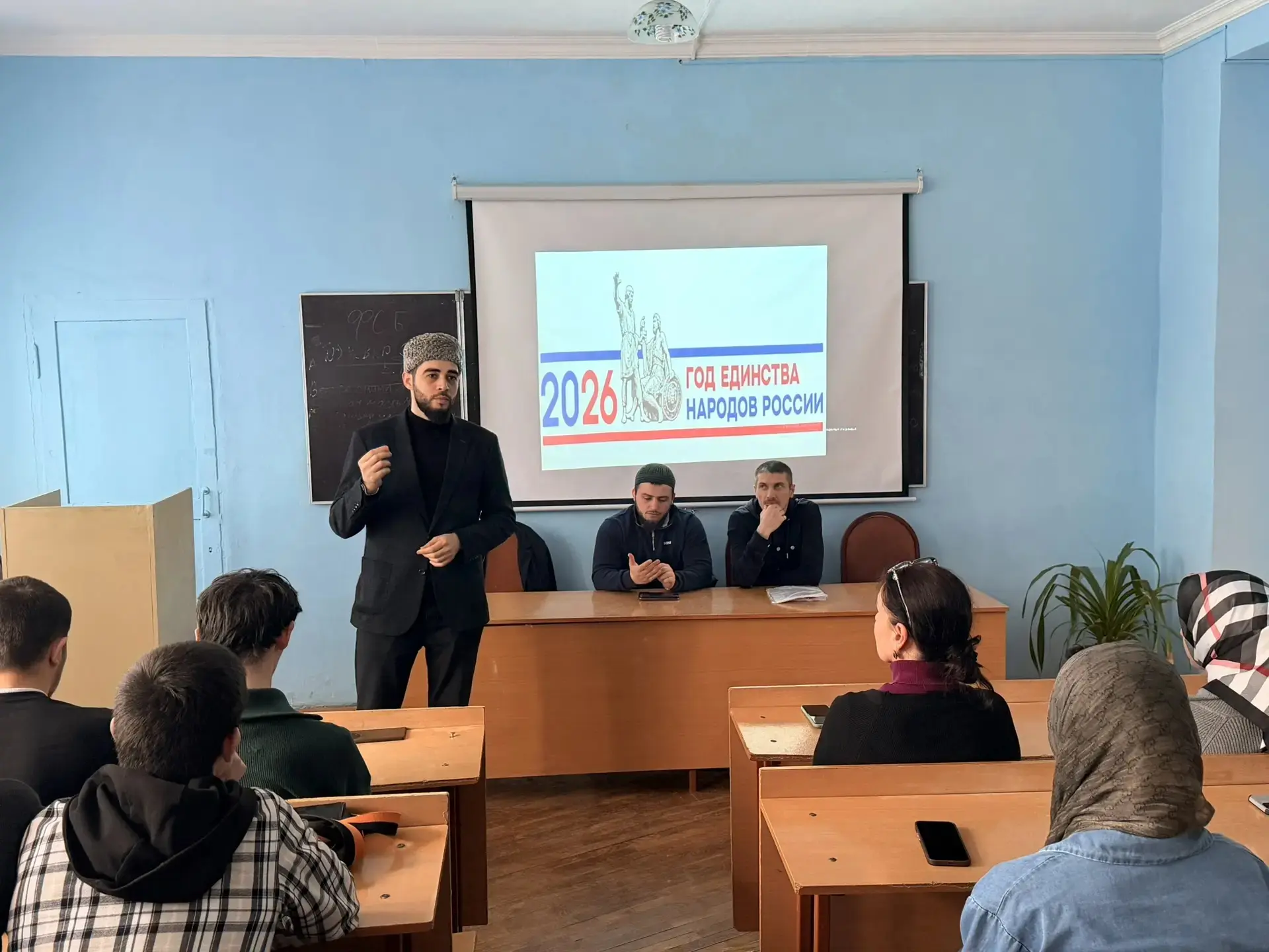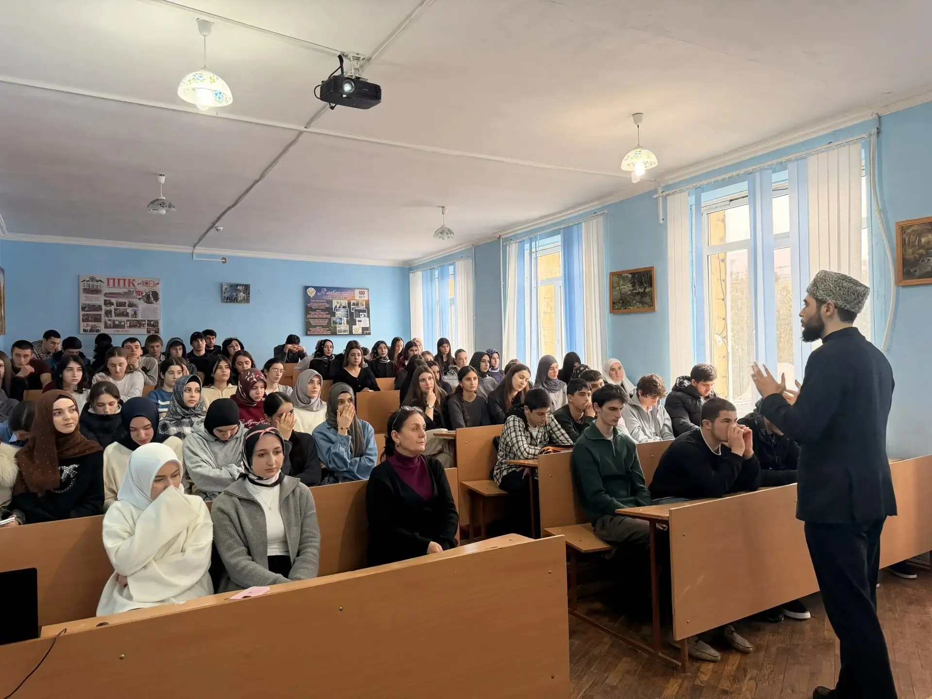 В рамках духовно-просветительской работы 26.02.2026г. в лекционном зале ГБПОУ РД «ППК им.М.М.Меджидова» состоялась встреча студентов с представителями духовенства, где важнейшей темой обсуждения стали межнациональные отношения, воспитание толерантности и веротерпимости в обществе в рамках объявленного 2026 года, как Года единства народов России. Гостями мероприятия стали руководитель отдела просвещения Муфтията Дагестана по г.Избербаш Алиасхаб Гаджиев, заместитель руководителя отдела просвещения Муфтията Дагестана по г.Избербаш Али Саидов и преподаватель теологии Гусейниев А.М..