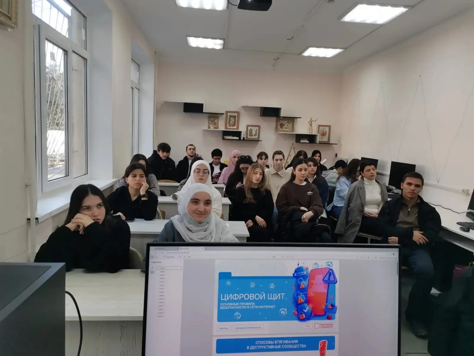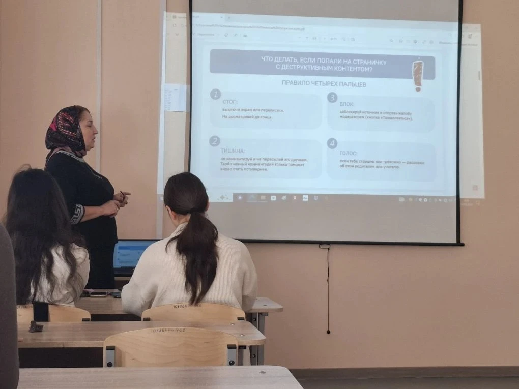 В рамках урока студенты обсудили важные аспекты безопасного поведения в сети, узнали о способах защиты личных данных, правилах безопасного общения и предупреждения киберугроз. Целью урока было повысить осведомленность студентов о необходимости соблюдения правил кибергигиены и защитить себя в цифровом пространстве.