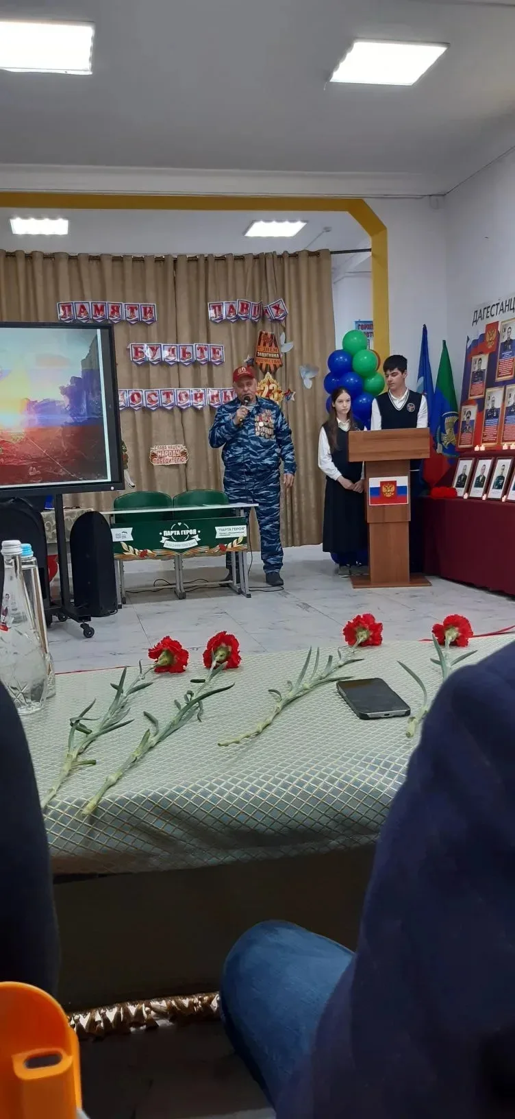 Большой вклад в организацию мероприятия внесла Умуриза Кутурчаева, мать кавалера Ордена Мужества Банаса Кутурчаева, которая обратилась к молодежи в зале, о долге перед Родиной и единстве наших народов.