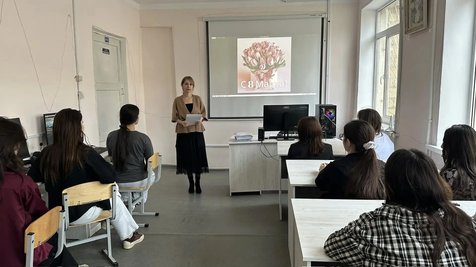 3 марта на 4 "Г" курсе был проведен классный час, посвященный Международному Женскому дню - 8 марта. Цель классного часа: ознакомить студентов с историей происхождения праздника, изучение поэзии, развитие творческих способностей, толерантности, уважения к женщине.