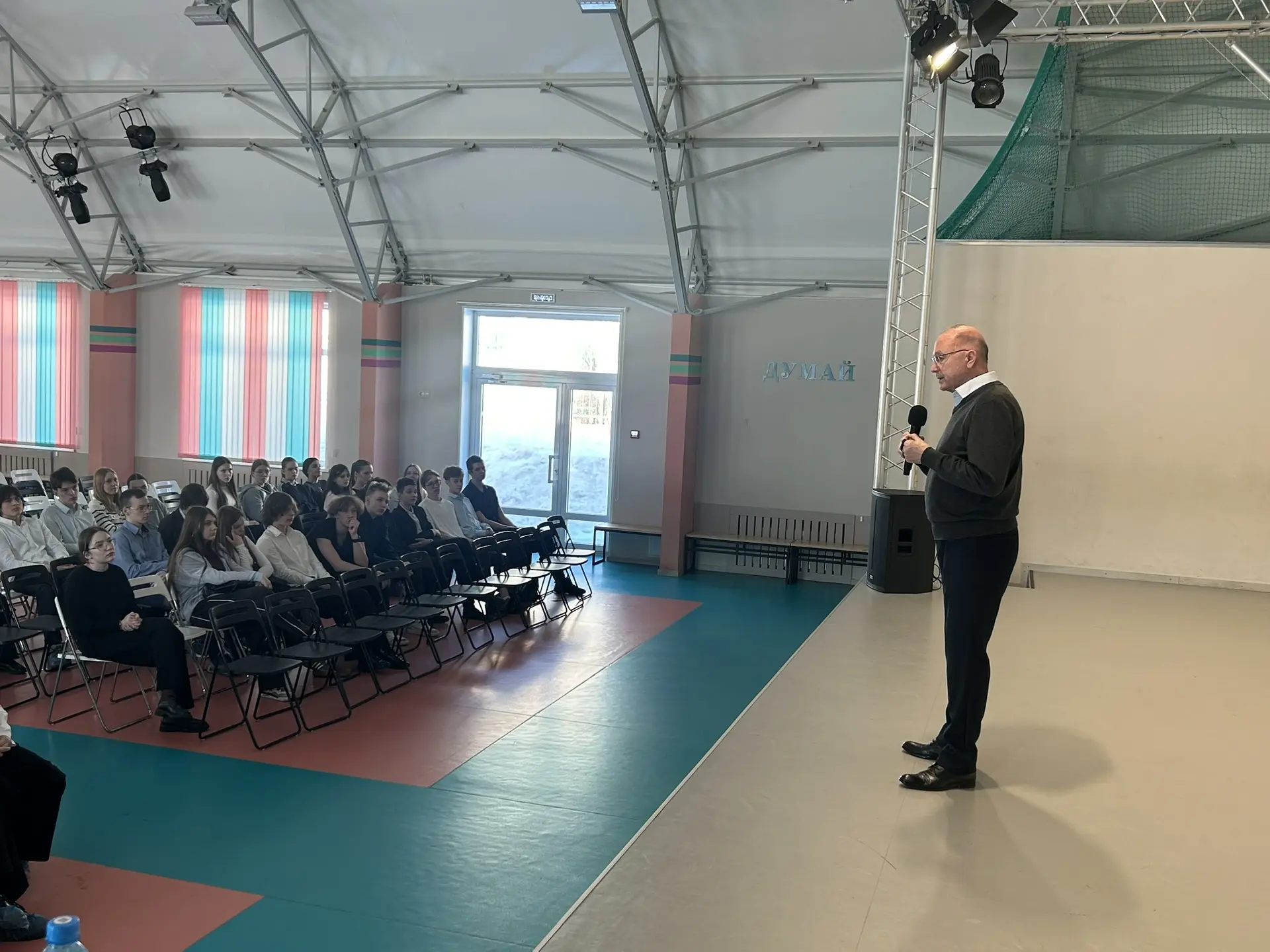 📣 Торжественный старт: День начался с линейки, где прозвучал гимн гимназии, и были представлены кандидаты, победившие в выборах на ключевые должности: