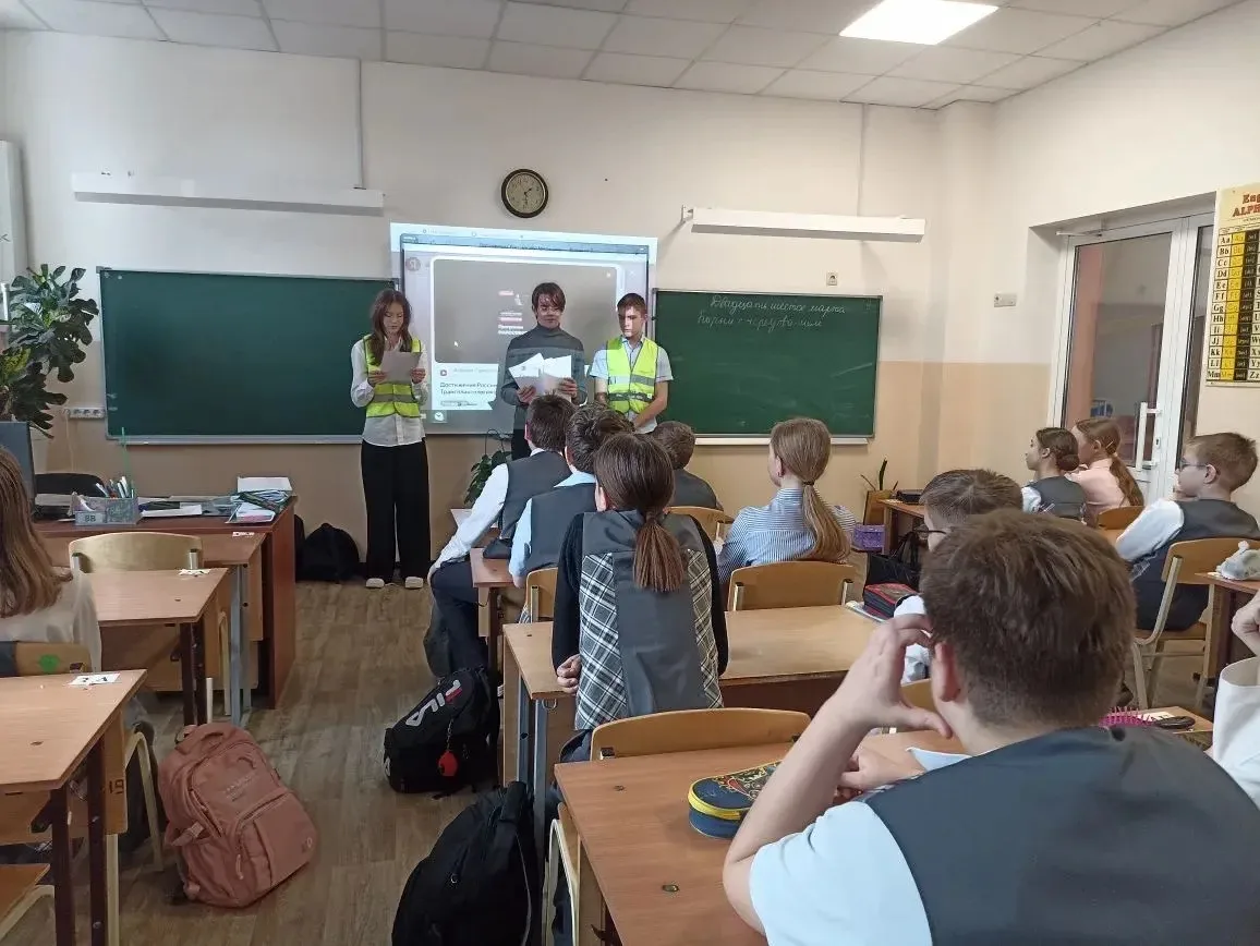 Весна — время переменчивой погоды, гололёда и первых велосипедов. Поэтому так важно повторить правила вместе со старшими товарищами. Восьмиклассники рассказали пятиклассникам о скрытых опасностях на проезжей части, напомнили, как правильно переходить дорогу, и объяснили, почему световозвращатели остаются актуальны даже весной.