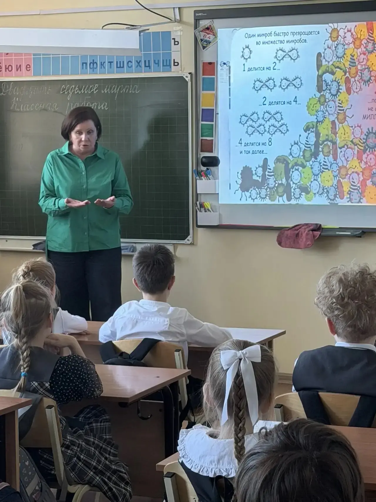 27 марта во 2Б классе прошло необычное занятие. В гостях у ребят побывала Светлана Геннадьевна Иванова — врач-эпидемиолог ФБУЗ «Центр гигиены и эпидемиологии Омской области».