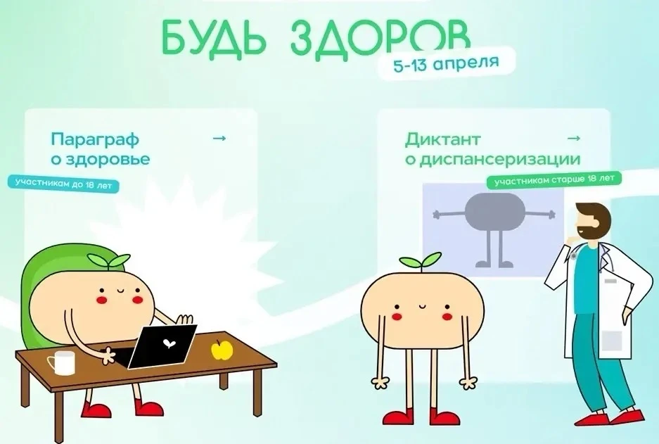 ‼ С 5 по 13 апреля 2026г. проходит Всероссийская акция «ДИКТАНТ ЗДОРОВЬЯ», приуроченная ко Всемирному дню здоровья.