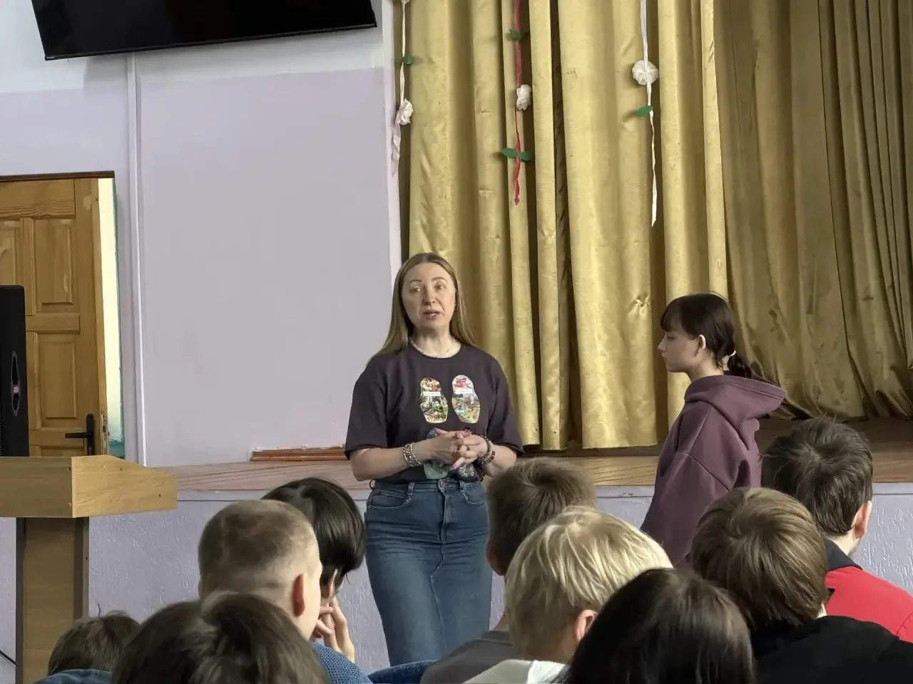 Во время просмотра видеоролика студенты с интересом узнали среди спикеров Карину Каграманян — главную актрису сериала «Манюня». 🎬 Оказалось, что для наших ребят это не просто экранное знакомство. В прошлом году Карина приезжала в Омск на Международный кинофестиваль «Свидание с Россией. Сибирский характер» имени Михаила Ульянова, где побывали и наши студенты.