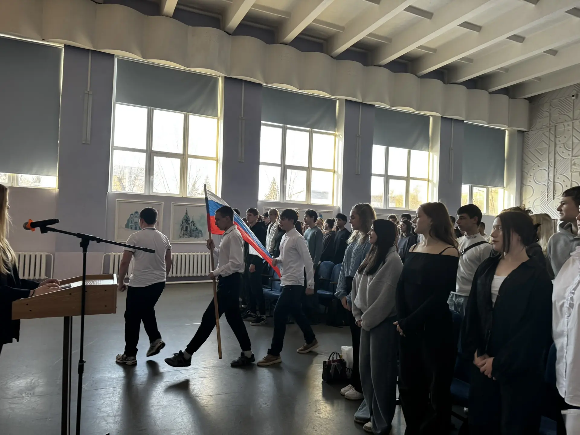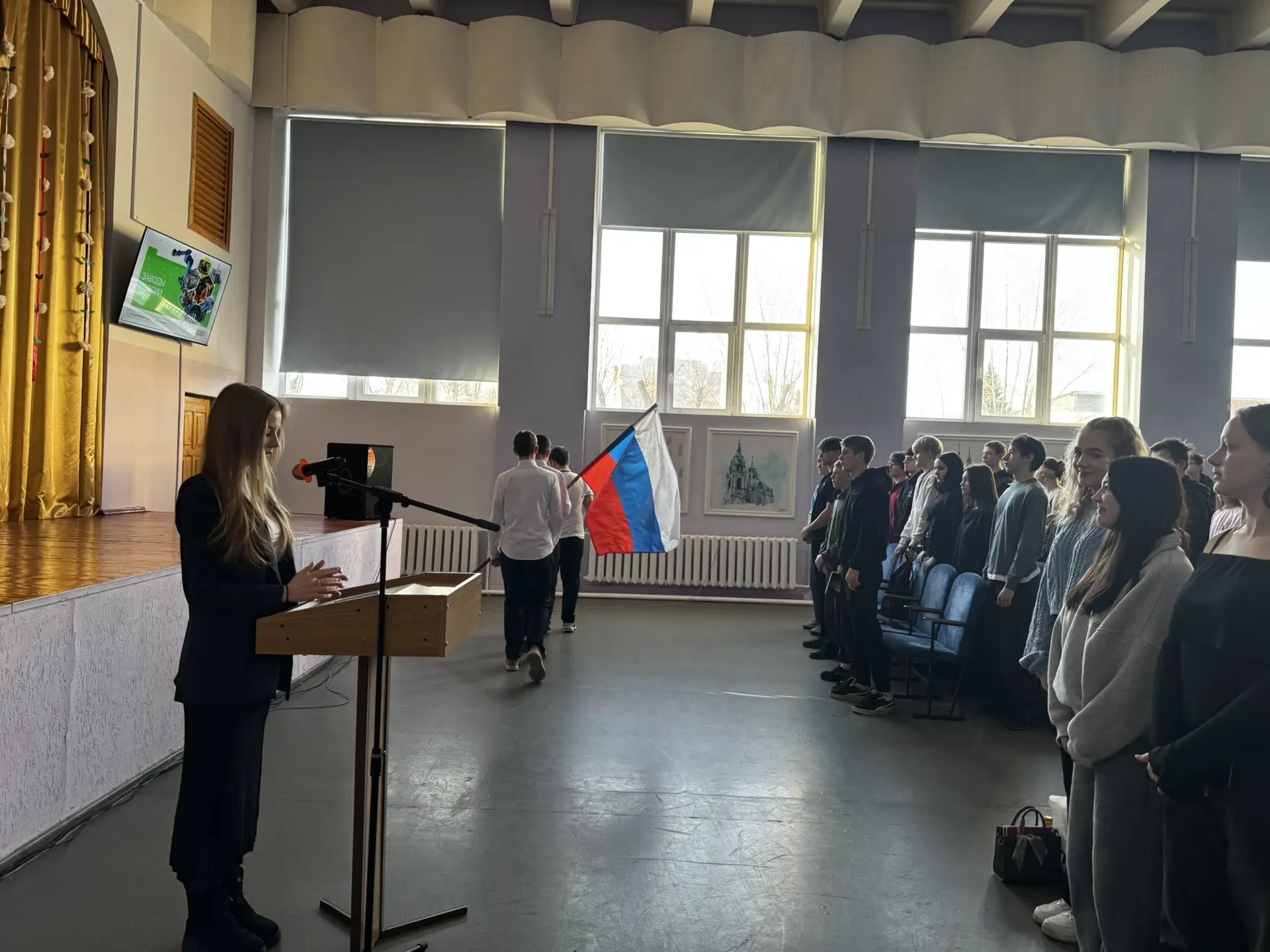 🇷🇺 Еженедельное патриотическое утро в колледже началось с торжественного выноса Государственного флага Российской Федерации и исполнения гимна.