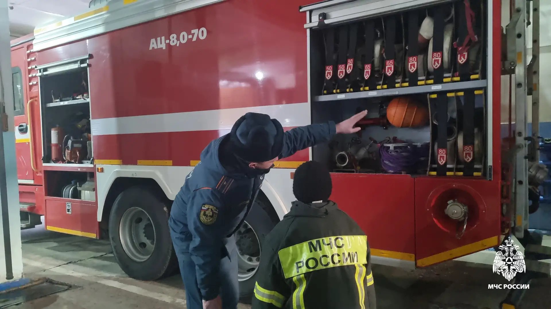 🔹В гаражном боксе, где стоит пожарная техника, сотрудники чрезвычайного ведомства показали Владу оснащение автомобиля: гидравлические установки, средства индивидуальной защиты, рукава, домкраты для поднятия тяжёлых препятствий и многое другое. Ребенок был очень увлечен, восхищался, с любознательностью наблюдал за всем происходящим. Кстати, было интересно не только мальчику, но и его маме.